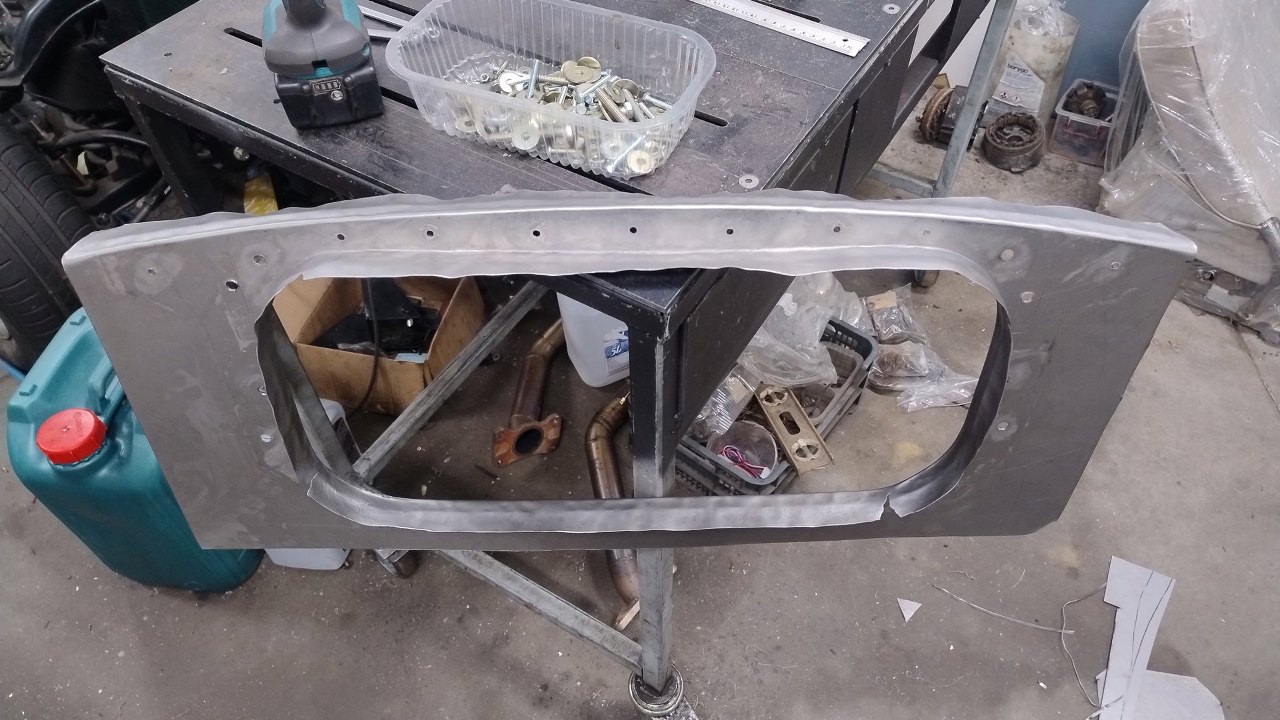No to uwaga, bo teraz będzie długa historia. Zabieramy się za przednią część, czyli wzmocnienie poprzeczne dookoła chłodnicy. Zabieramy się to oznacza głównie mojego syna oczywiście. Całość tej części jest na tyle pognita, że w zasadzie może służyć tylko za wzór. No i nie ma w ogóle dolnej części.