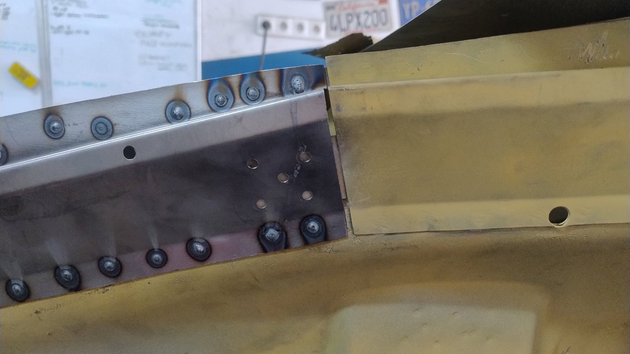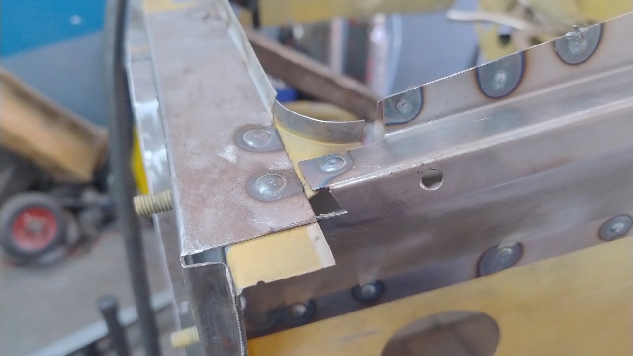 Drugie wzmocnienie, po prawej, ciężej odchodziło, więc niektóre zgrzewy lekko naderwały blachę. Te naderwania zostały nacięte i zostaną zaspawane.