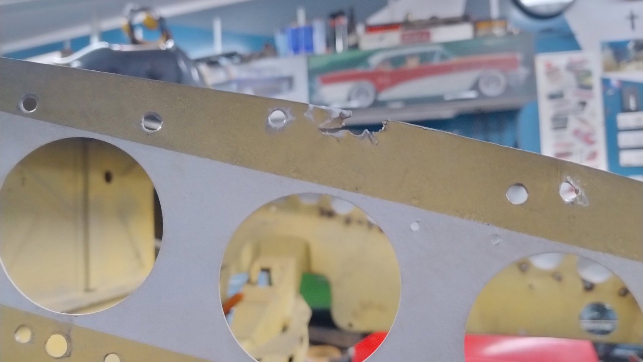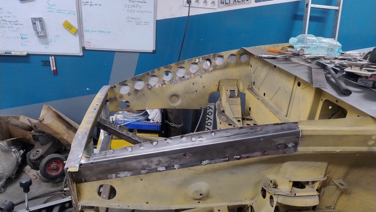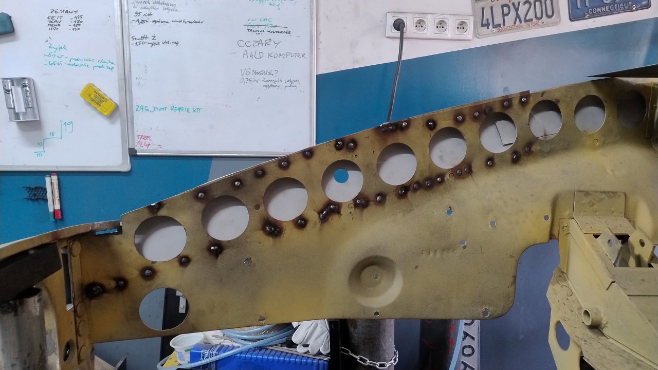 Z tej strony są otwory na spawy - pozostałości po odwierceniu oryginalnych części. Czyli nawet spawy będą w oryginalnych miejscach :).