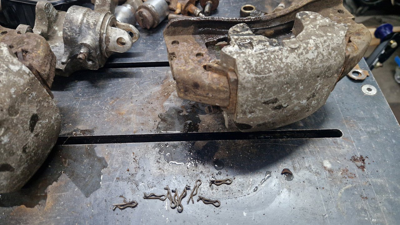 Na częściach są oznaczenia Hydrokid. Bardzo mało jest na temat tej firmy informacji, ale jej hamulce były montowane jeszcze w Simcach, Renault z tamtej epoki i pewnie jeszcze czymś. Tłoczki, zestawy naprawcze i klocki udało się kupić w sklepie z częściami do Matry, ale to by było na tyle. Co i tak jest dużym sukcesem.