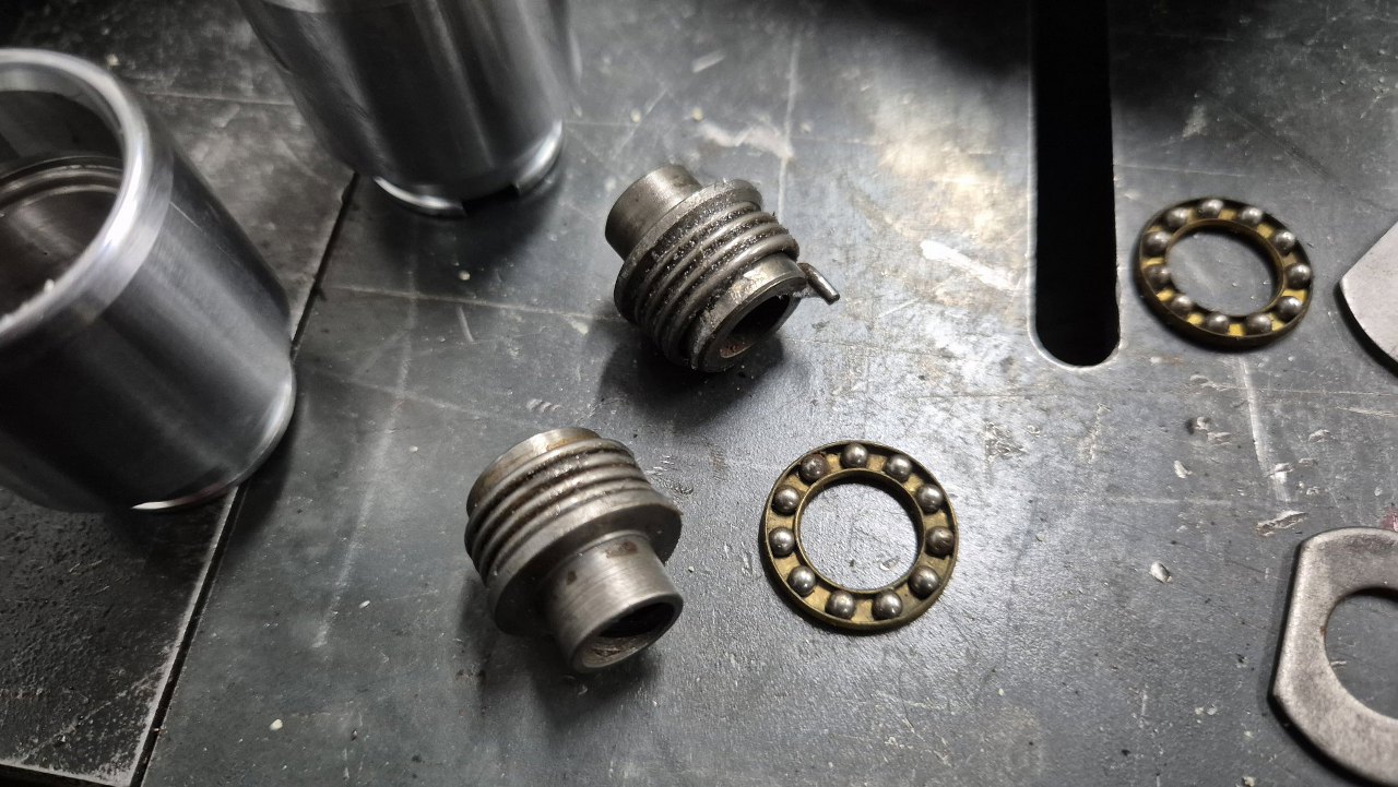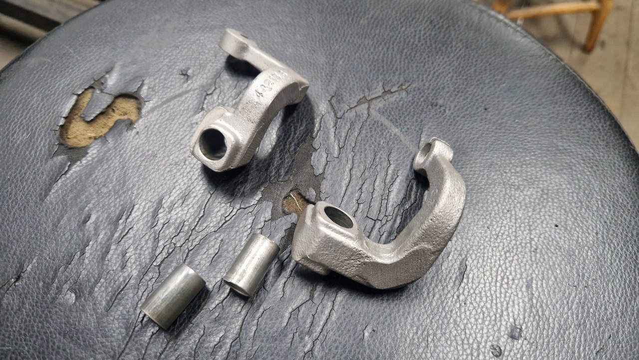 Potem znowu części uleżały się na półce, ale zostały wyciągnięte i kończymy składanie. Jarzma po szkiełkowaniu poszły do cynkowania. Widać w nich sporo wżerów, ale konstrukcyjnie są mocne i można je uzywać. Podobnie zaciski - mają sporo wżerów (zwłaszcza tylne), ale będą działać.