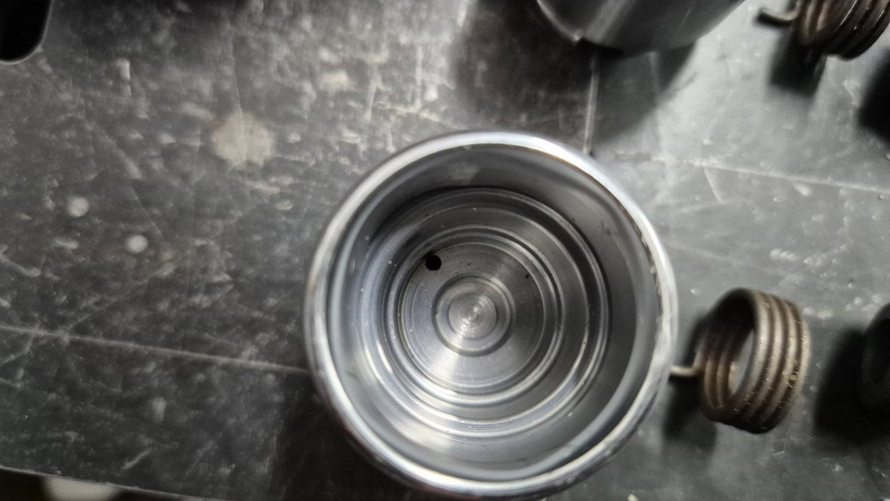 Na dnie tłoczka jest otworek na sprężynę.