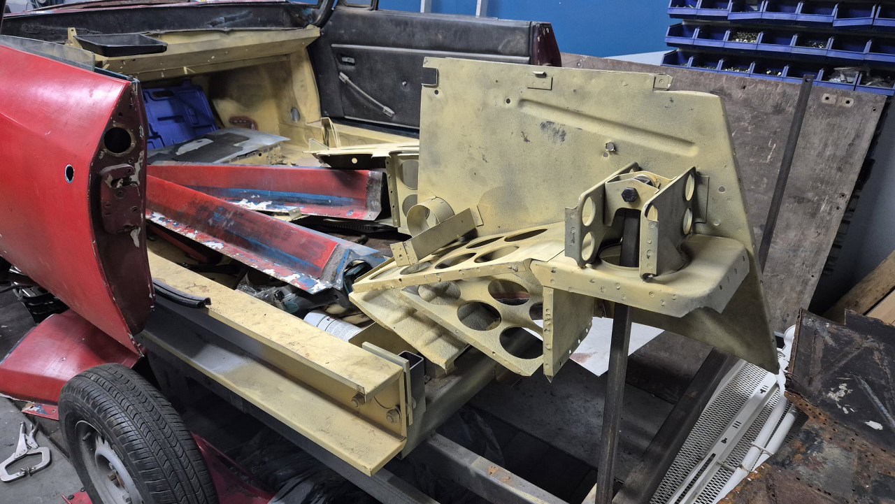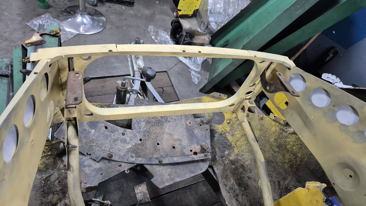 Z czerwonej Matry pas przedni górny i dolny są w bardzo słabym stanie. Żółty pas przedni dolny jest nieco inny, ale póki co do przymiarek musi wystarczyć. Ma inne łączenia z błotnikami, co na razie nam nie przeszkadza.