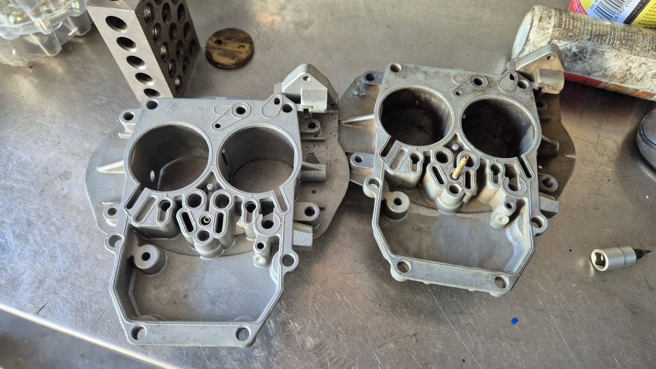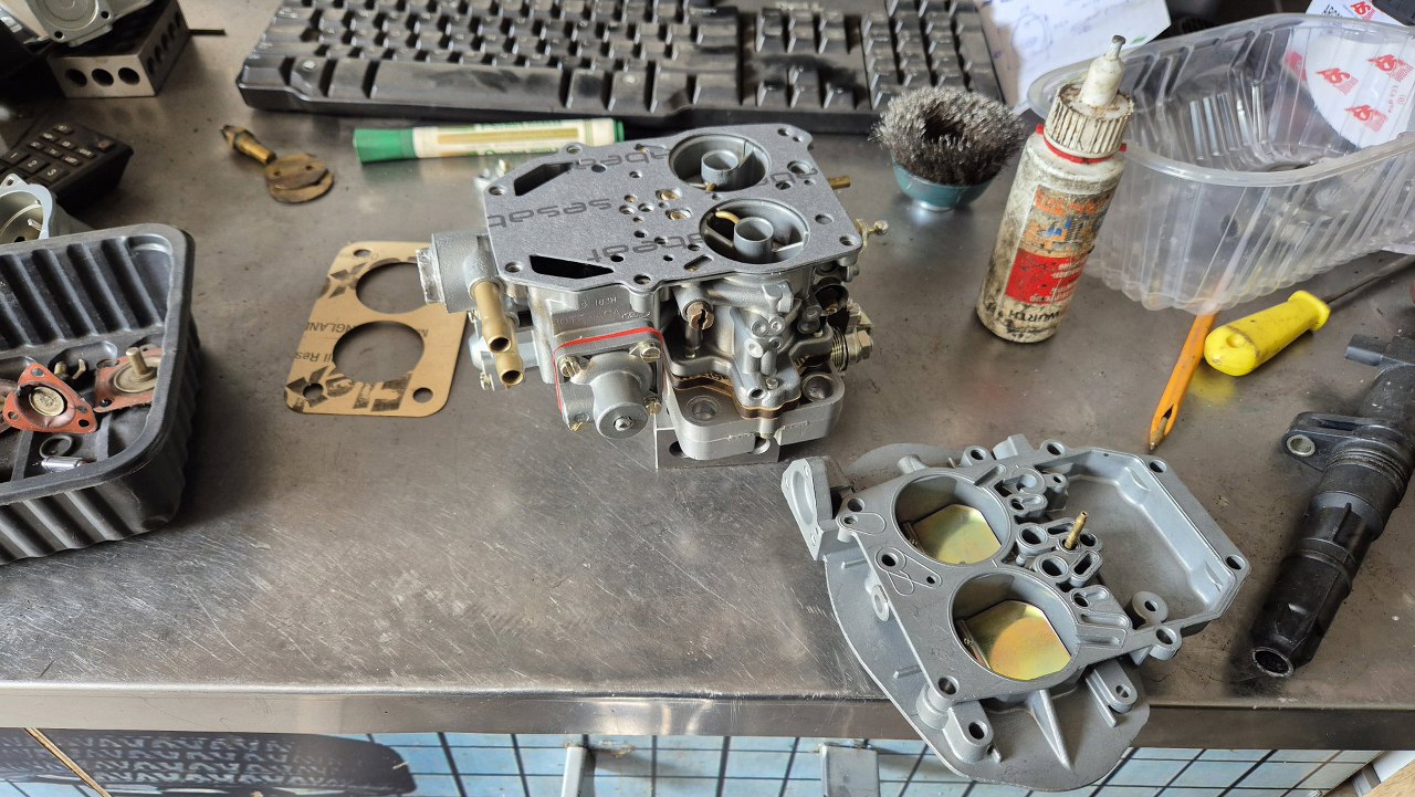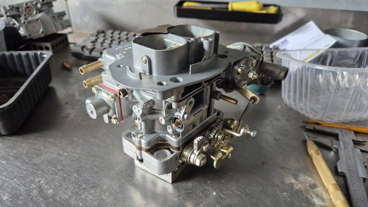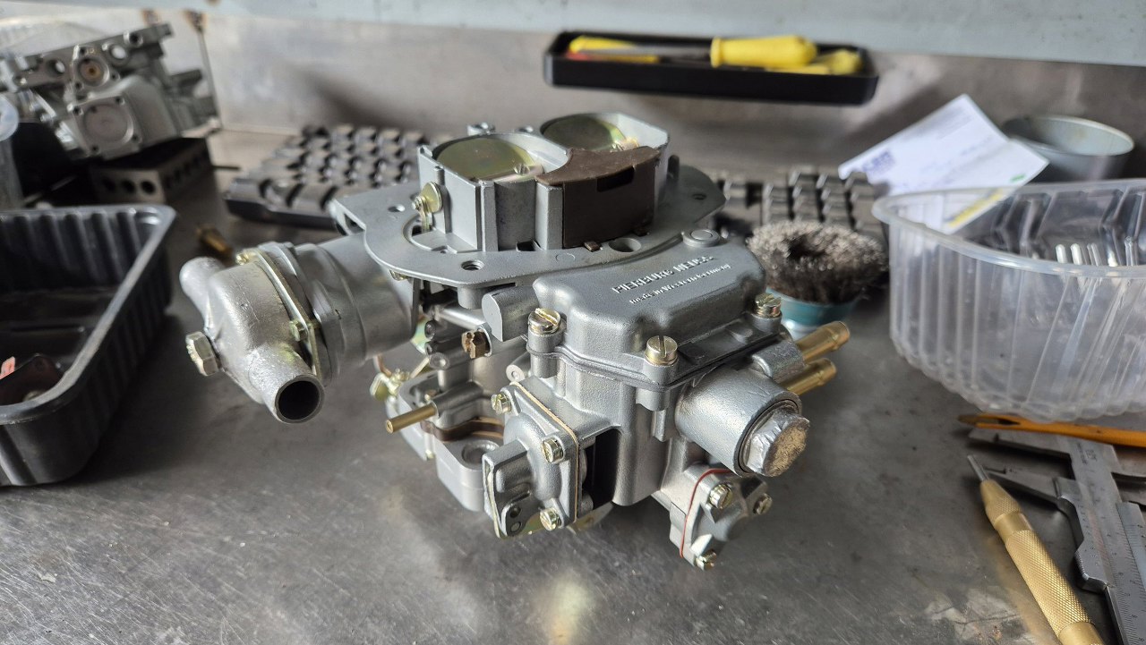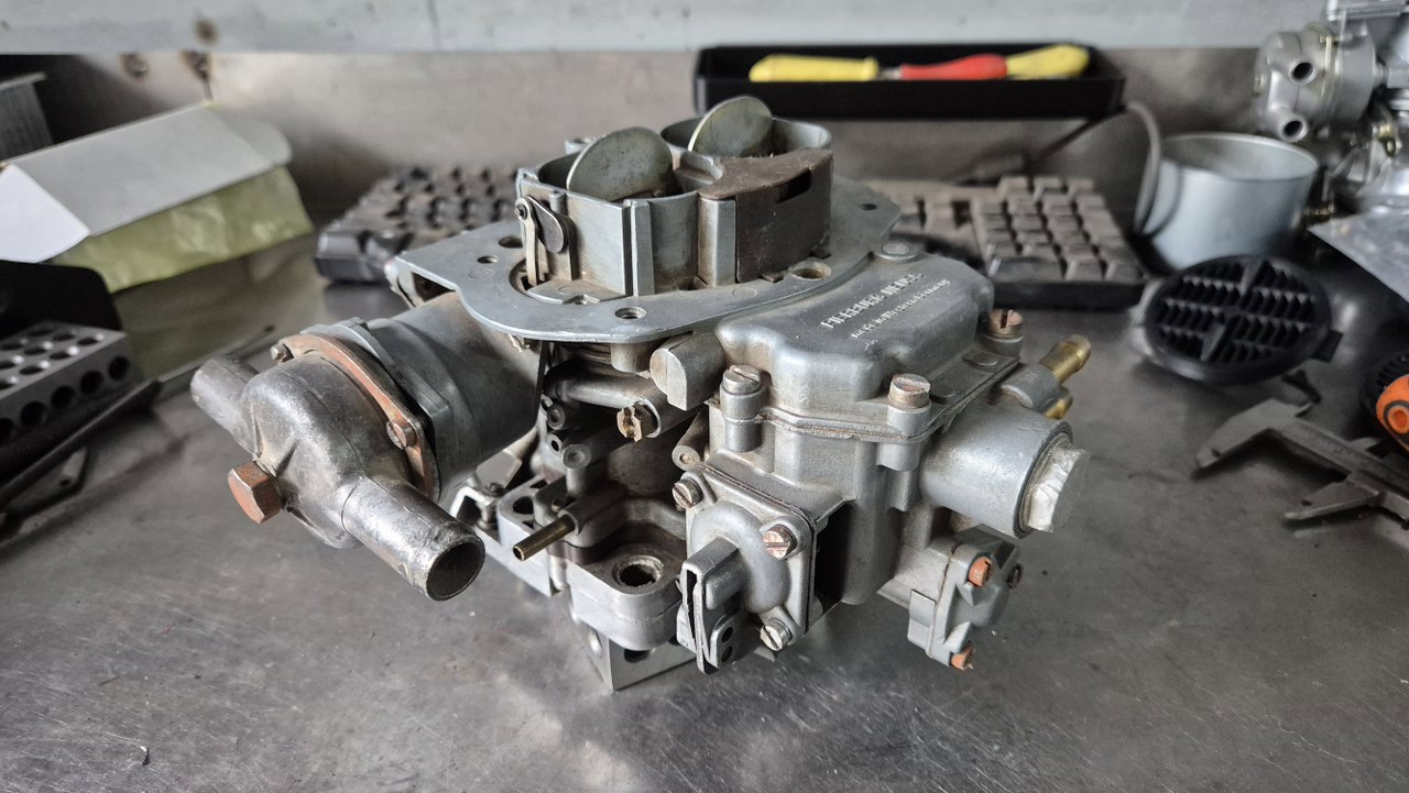 Kolejna rzecz, o której zrobienie poprosił mnie właściciel tego Taunusa 17M, to gaźnik. Rzecz totalnie nie od tego auta, bo oryginalnie był tam silnik V4, ale docelowo będzie 2.0 V6, i od takiego właśnie silnika jest ten gaźnik. Model - typowy Solex EEIT o przelotach 32/32 mm.