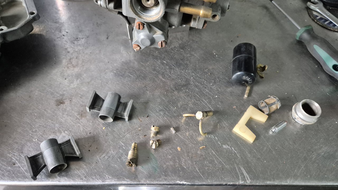 Zdemontowałem pływak z zaworkiem iglicowym, dysze i rozpylacze.