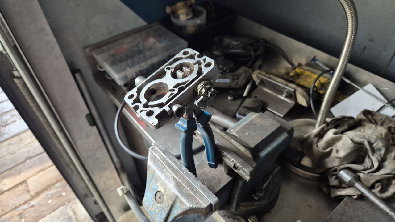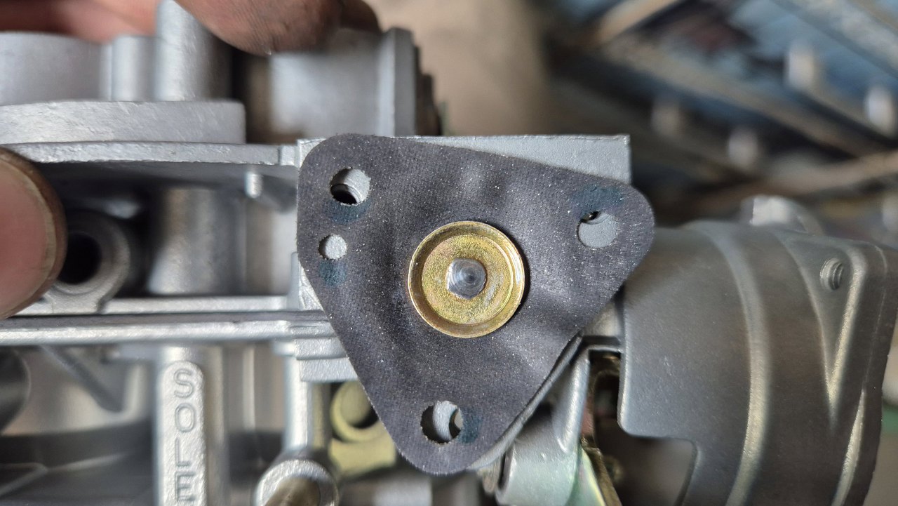 Dostałem już zestaw naprawczy, więc mogę skręcać dalej. Najpierw płytka przepustnic do korpusu gaźnika.