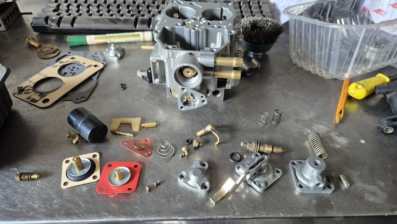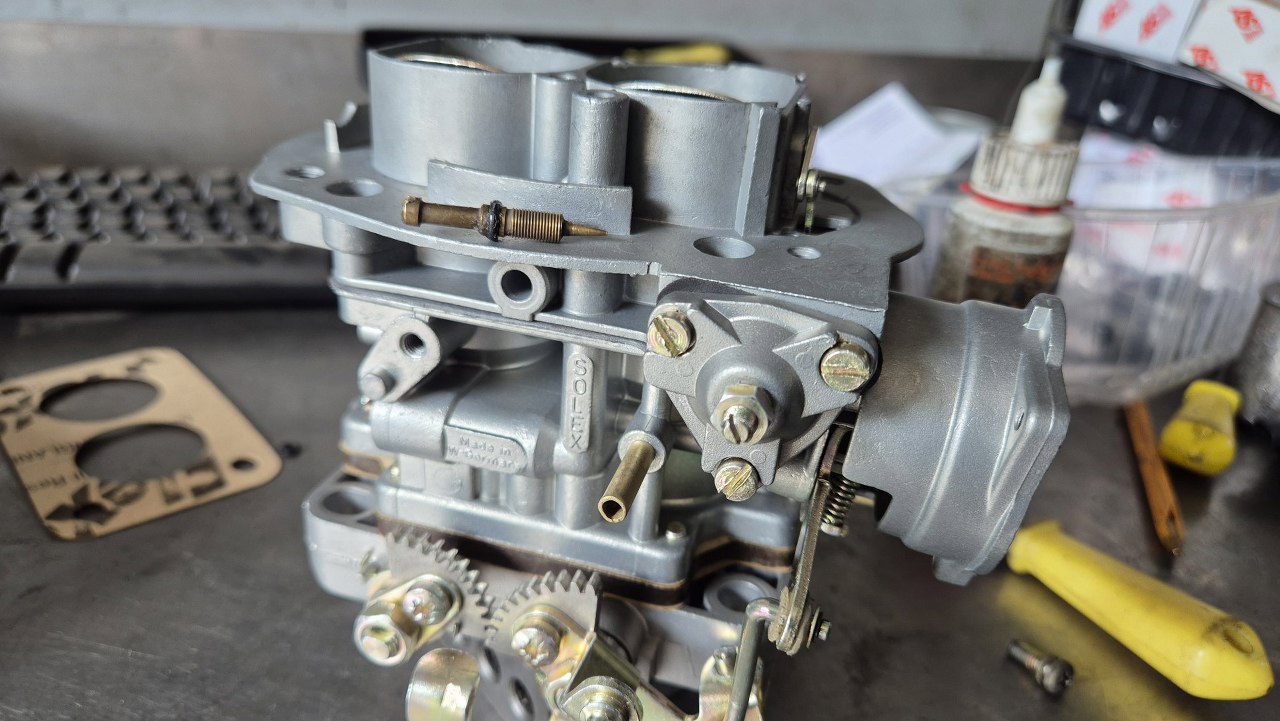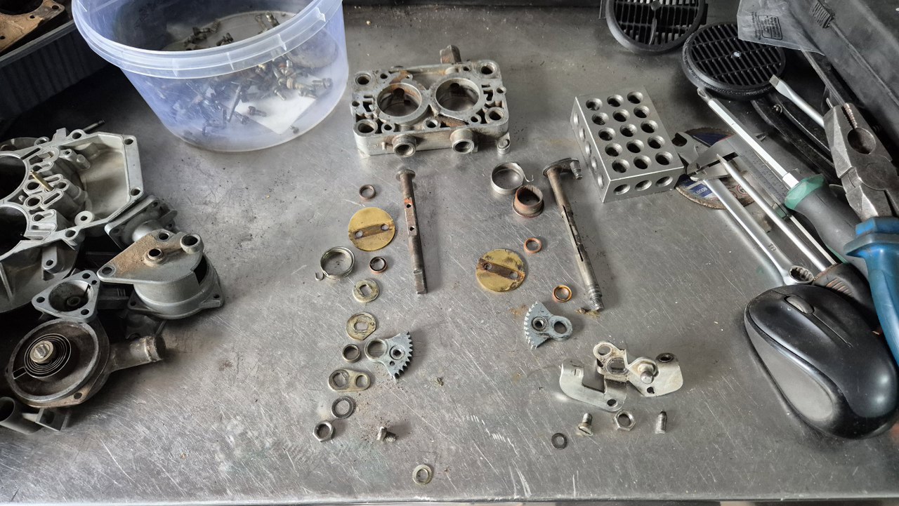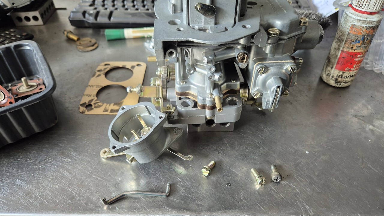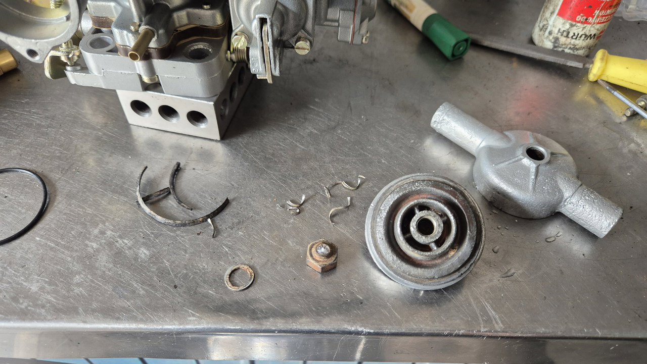 Zaraz po mechanizmie przepustnic, żmudnym do złożenia i wyregulowania, to jest druga rzecz trudna w tym gaźniku, czyli mechanizm ssania. Ciężko go źle poskładać, ale jest to drobne i wewnątrz obudowy.