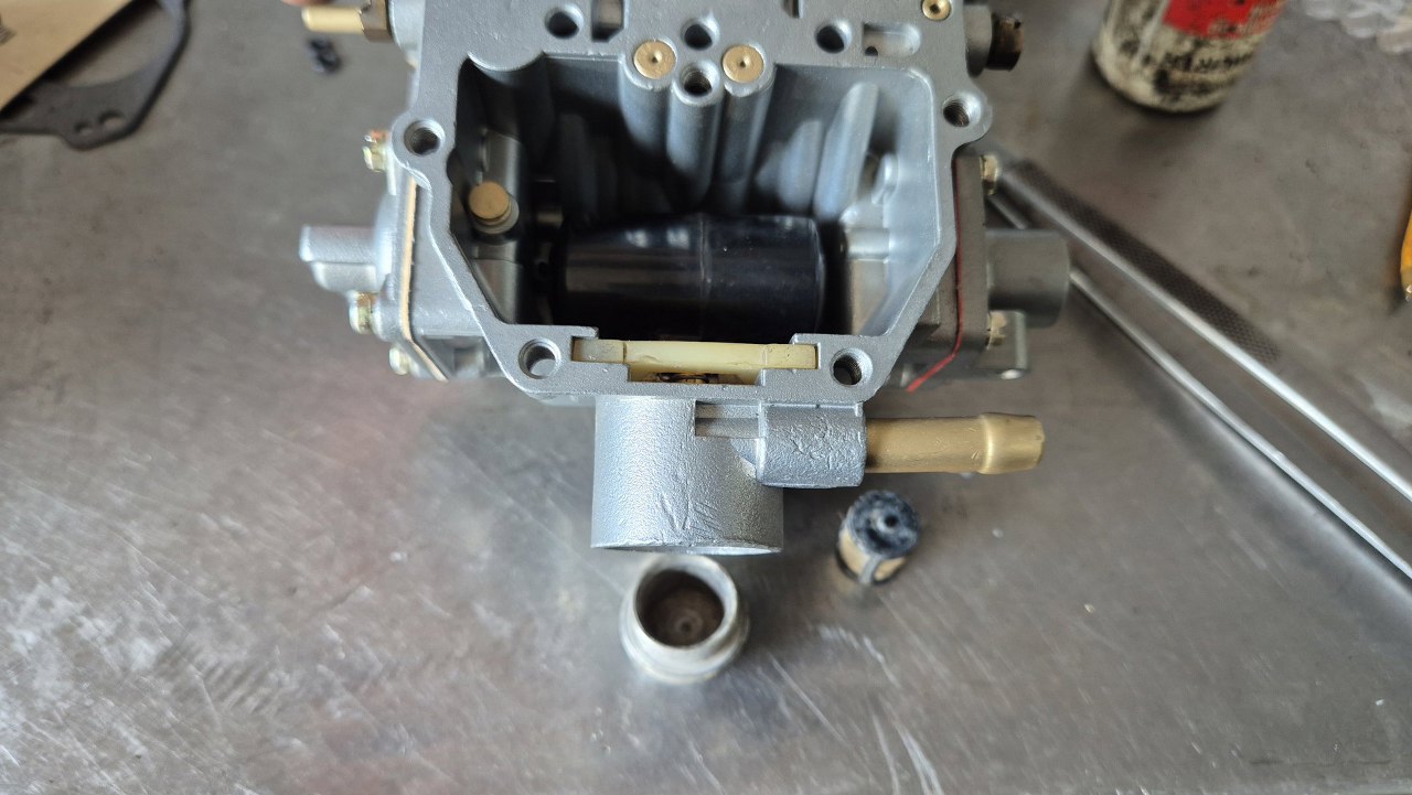 Wymienię też pokrywę gaźnika na lepszą. Ma tylko ułamaną rurkę pośrodku, więc rurkę muszę przełożyć ze starej pokrywy.