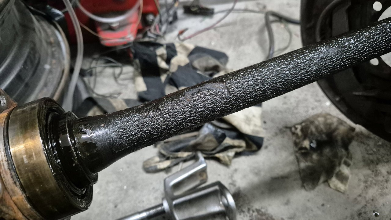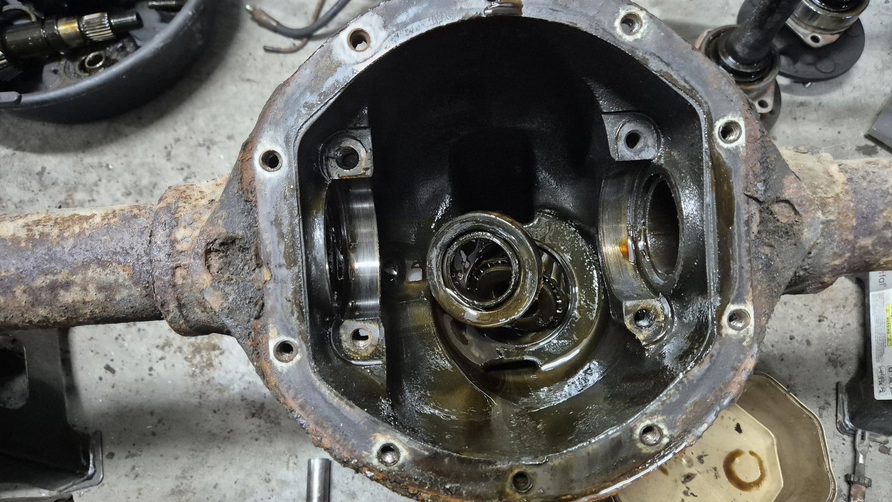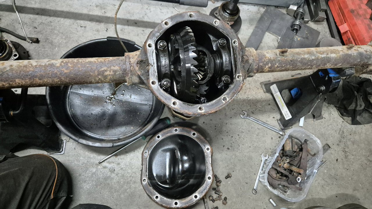Zapowiada się upojny czas podczas mycia półosi i obudowy mostu w środku... to pomarszczone to zestarzały osad z oleju przekładniowego. Co ciekawe, nawet nie pachnie tak, jak byś się spodziewał.