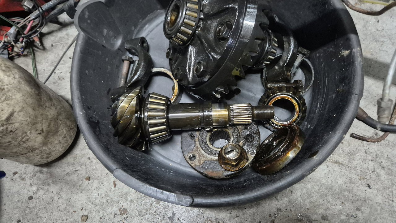 Na koniec wybiłem jeszcze bieżnie łożysk wałka ataku. W międzyczasie wszystko to będzie umyte, zrobię listę zakupów, a obudowę mostu dam do piaskowania. Okazało się też, że mocowania resorów są pogięte, więc po piaskowaniu, a przed malowaniem proszkowym, będzie trzeba się i tym zająć.