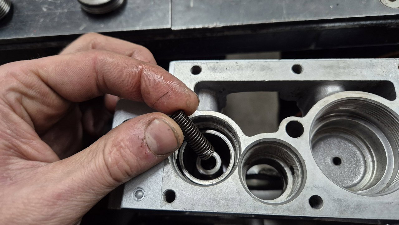 Tu trzeba jeszcze jeden zaworek złożyć, czyli kulkę, sprężynkę i korek.