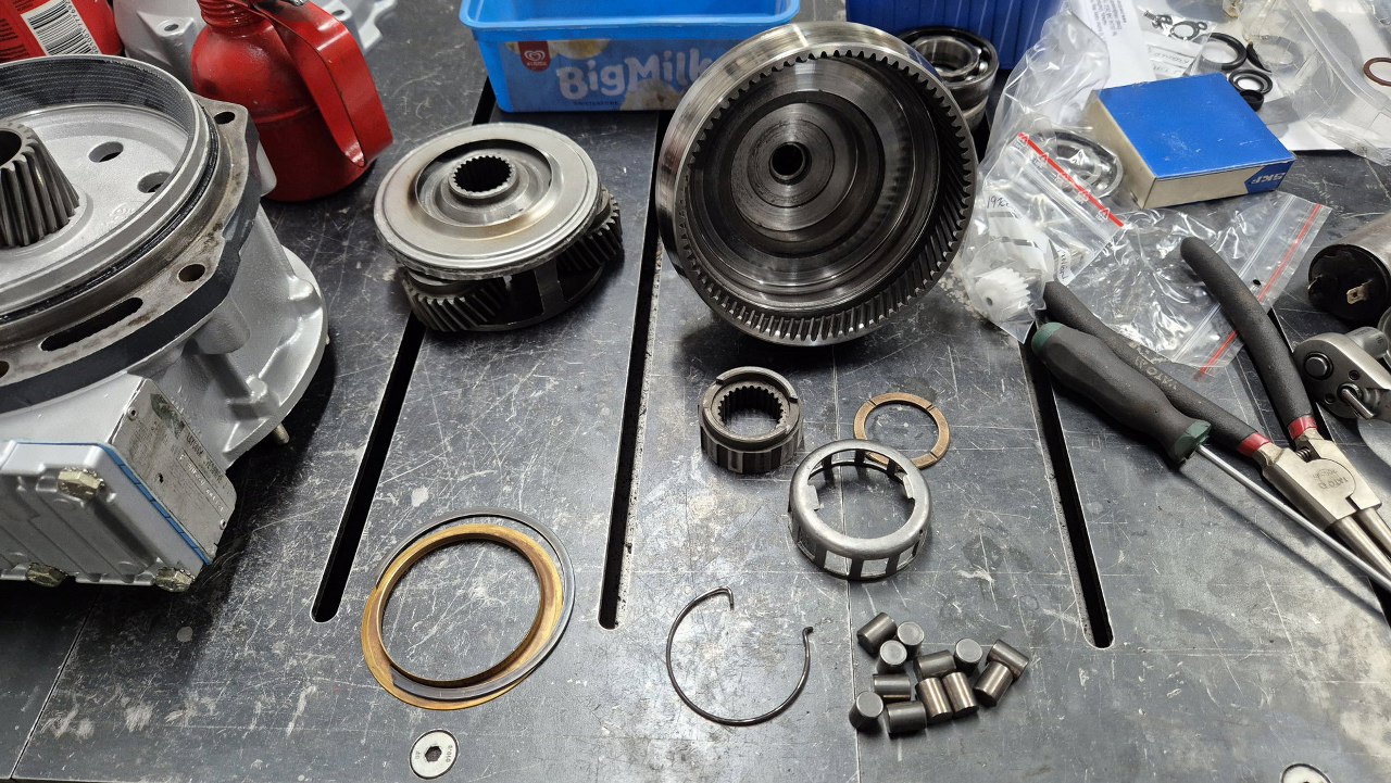 Złożę teraz bęben przekładni planetarnej. Łożysko jest te, co było.