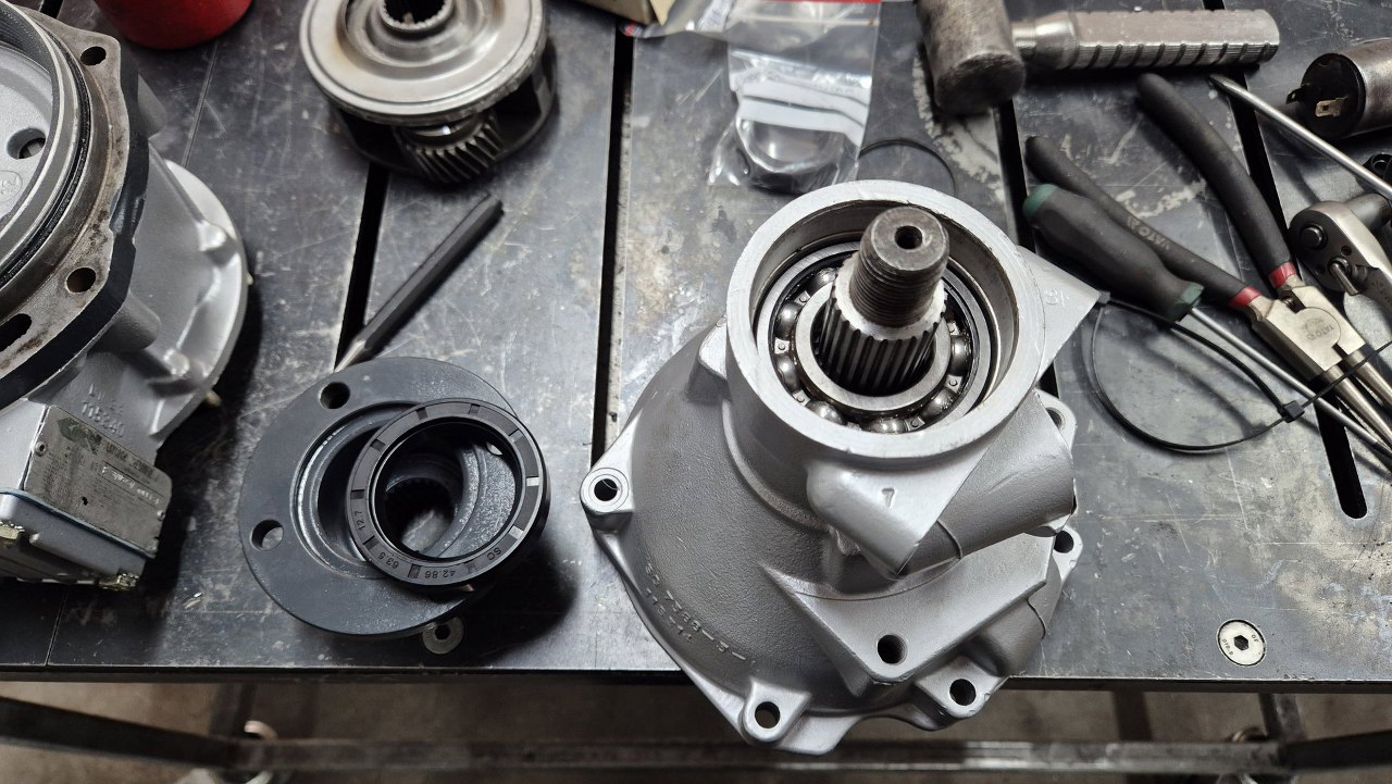 Potem założyłem uszczelniacz i przykręciłem flanszę pod wał napędowy.