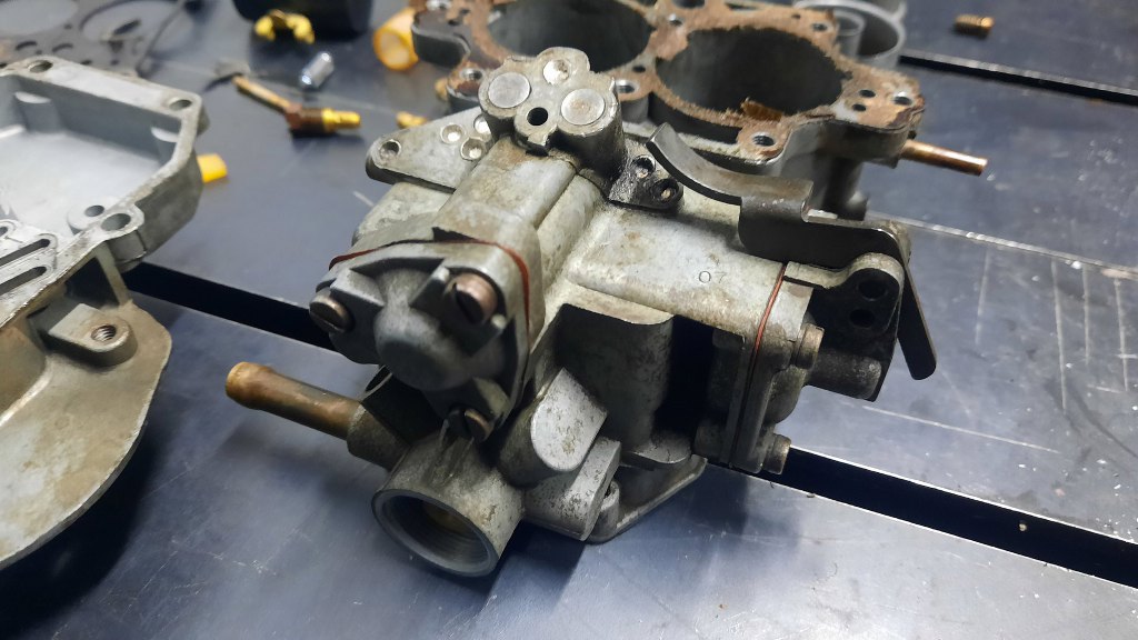 Kolejny, znienacka zlecony gaźnik. Znowu Pierburg Solex EEIT z Forda, tym razem wersja 32/32 z Taunusa 2.0 V6. Gaźnik podobno został oddany do regeneracji do innego fachowca, który to się nie podjął, jako powód podając powód, że gaźnik jest w tak złym stanie, że nie ma co z niego zrobić. Z tym twierdzeniem będę polemizował, bo, mimo, że z zewnątrz gaźnik wygląda standardowo jak złom, to ostatecznie okazał się być w świetnym stanie. Rzućmy okiem jak wyglądał po dostarczeniu go do mnie: