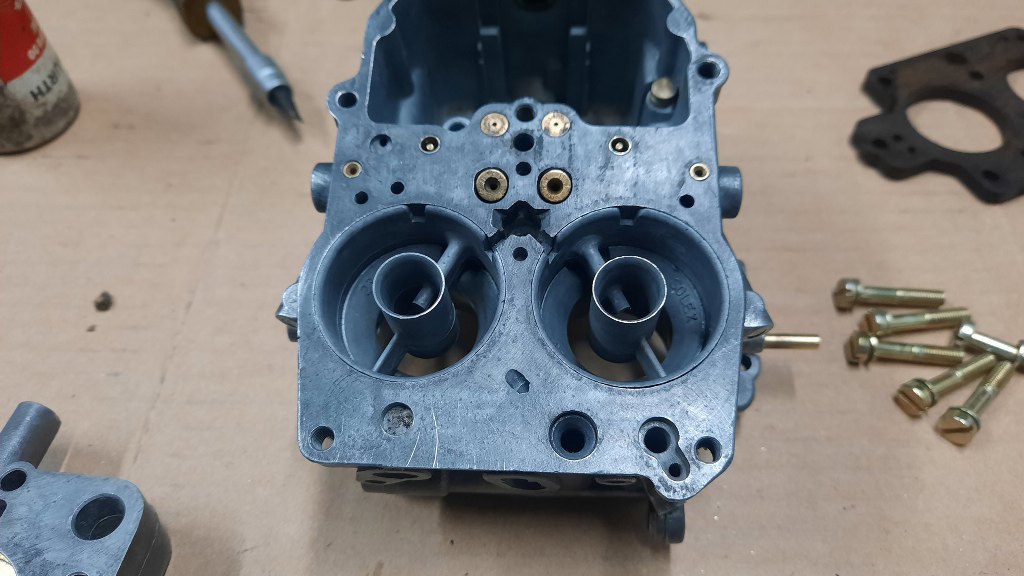 Kolejnym krokiem jest przygotowanie korpusu gaźnika i zamontowanie w nim zwężek.