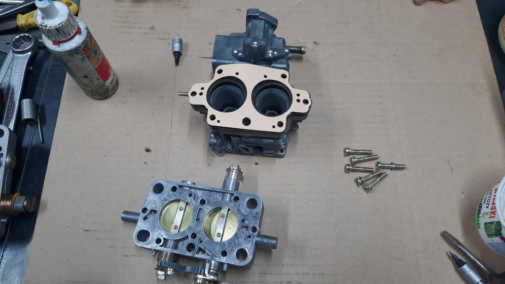 Przygotowałem też wszystkie uszczelki przekładki gaźnika. Zaraz przykręcę płytkę przepustnic.