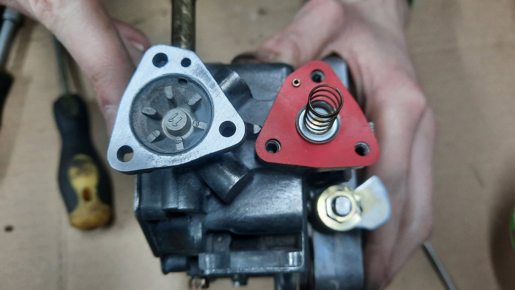 Przykręciłem pokrywę gaźnika do korpusu. Teraz osłona termiczna mechanizmu ssania