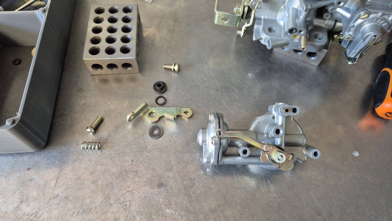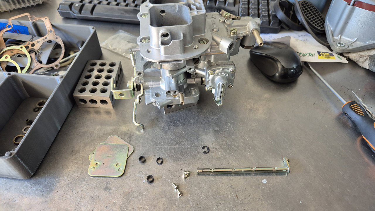 Odwracam gaźnik i zabieram się za mechanizm przepustnic.