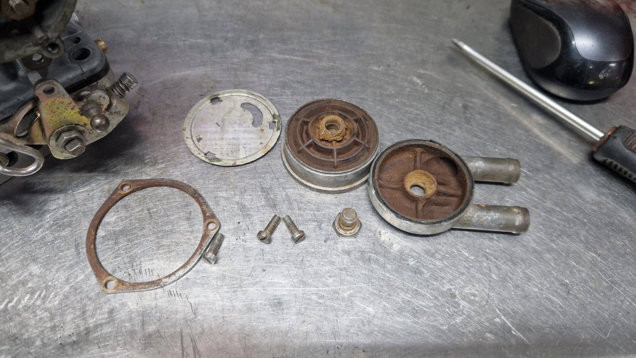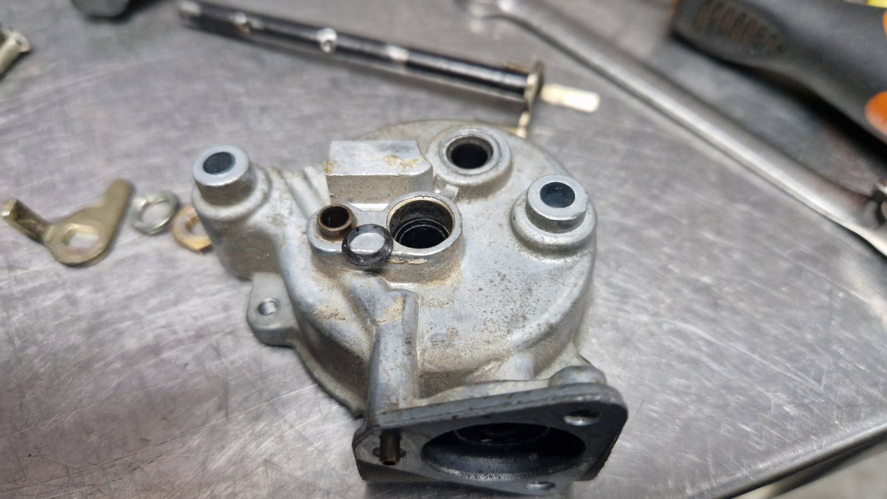 Teraz zdejmę pokrywę pompki przyśpieszacza. Wykręcę też drobne śrubki z boków korpusu.