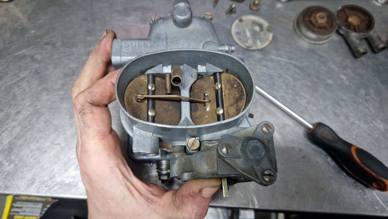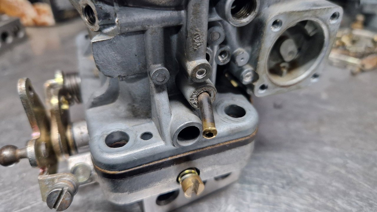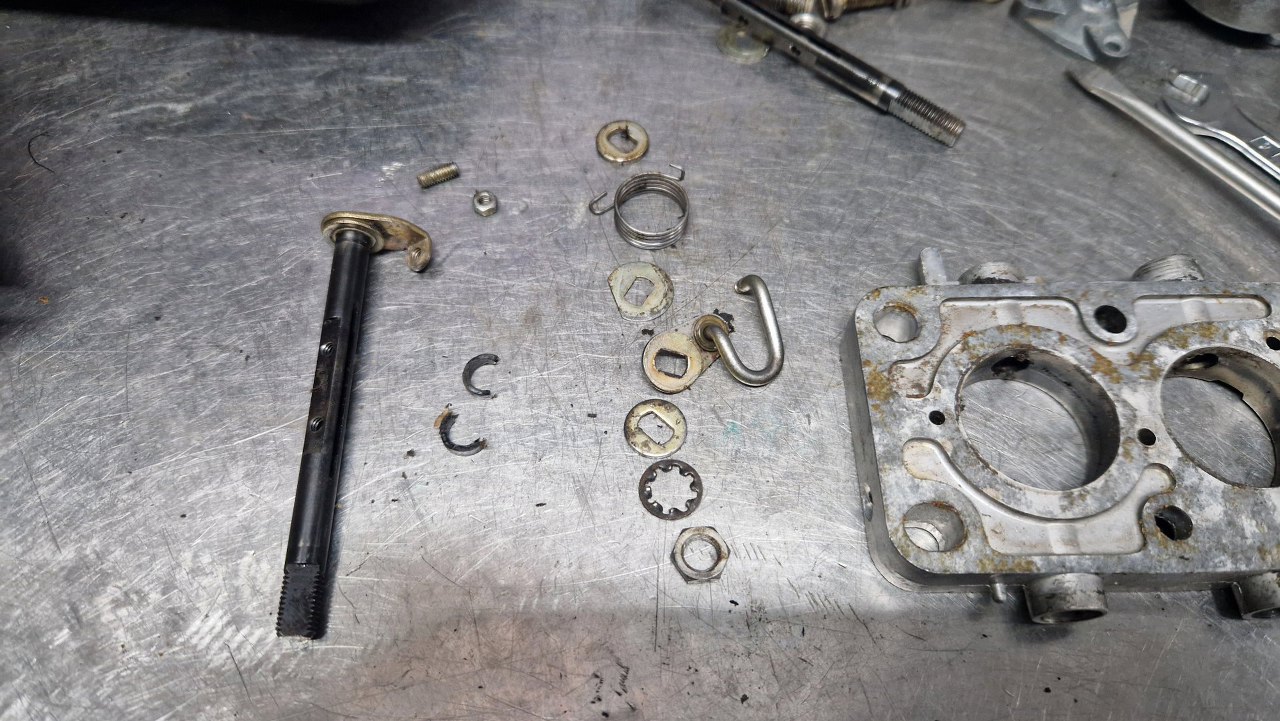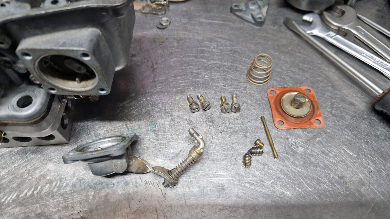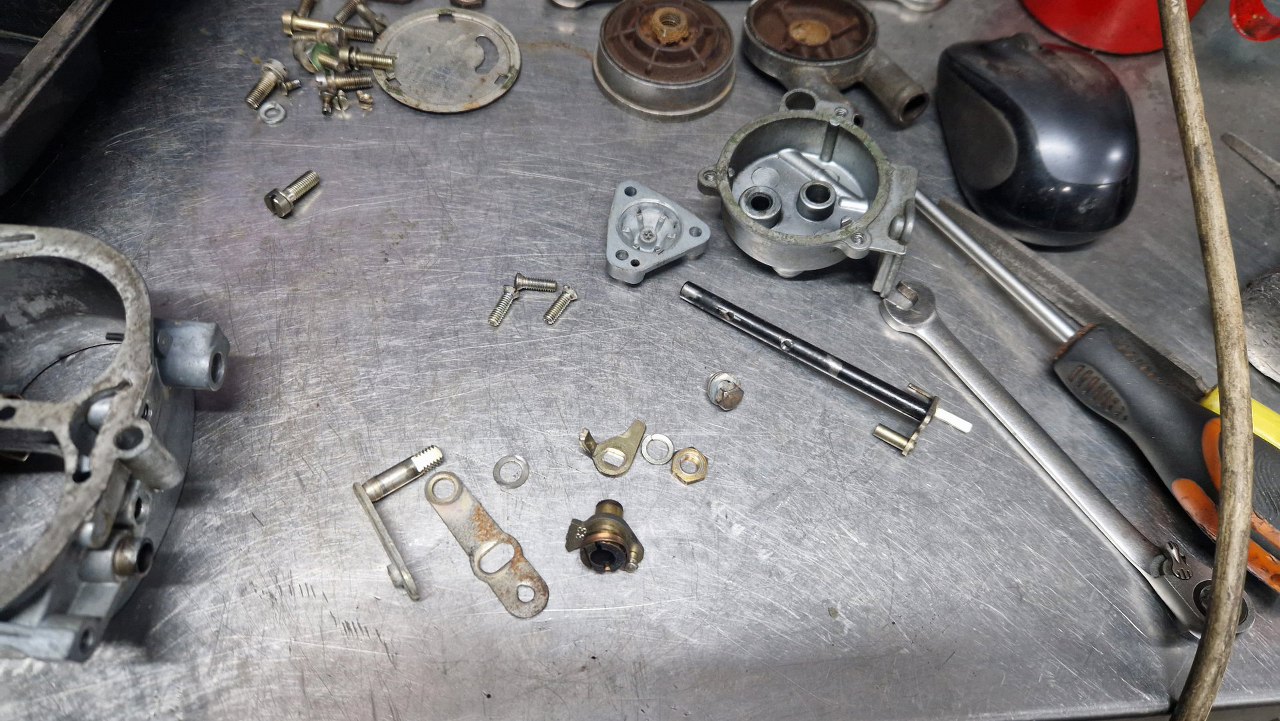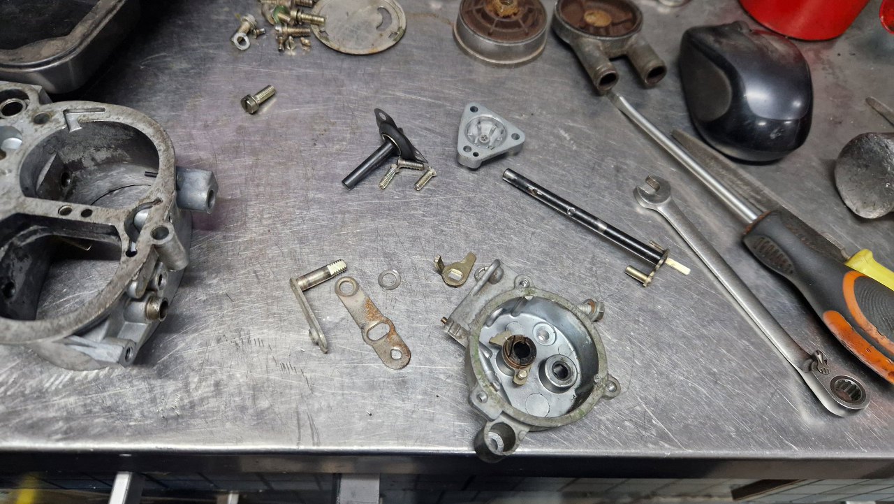 Odwracam gaźnik żeby się dostać do przepustnic.