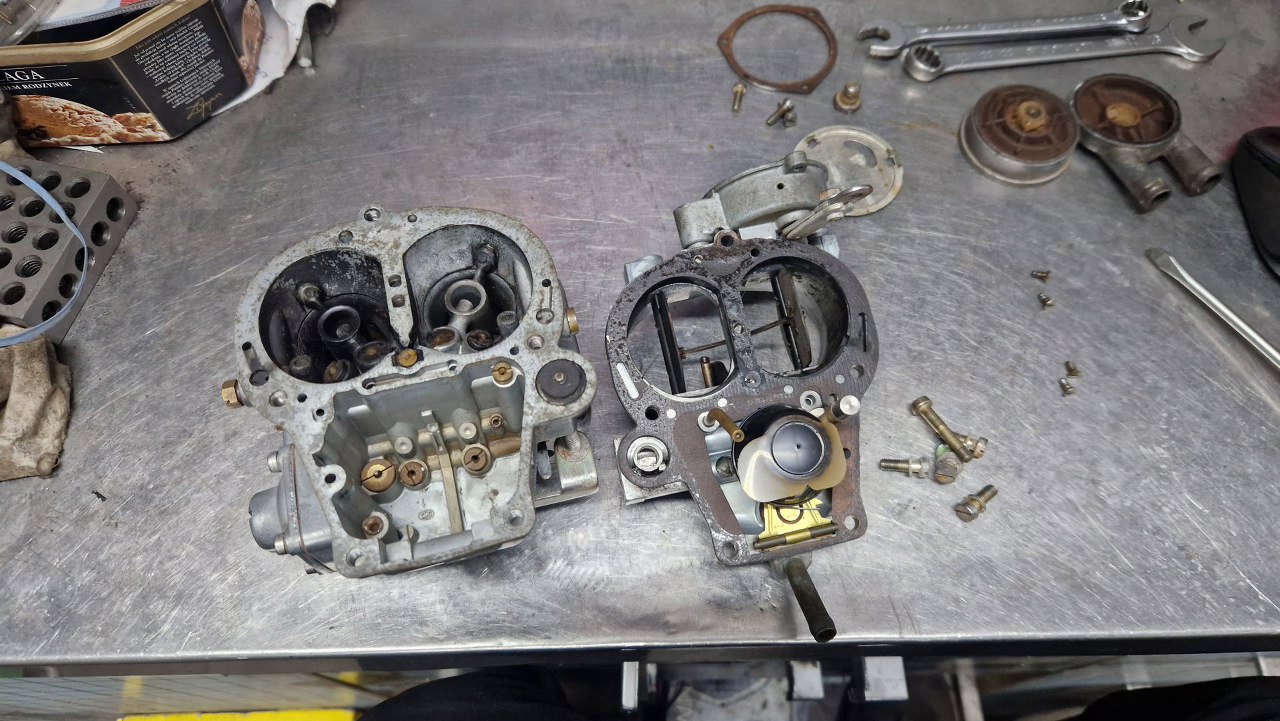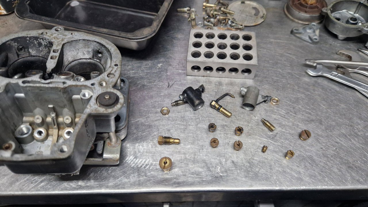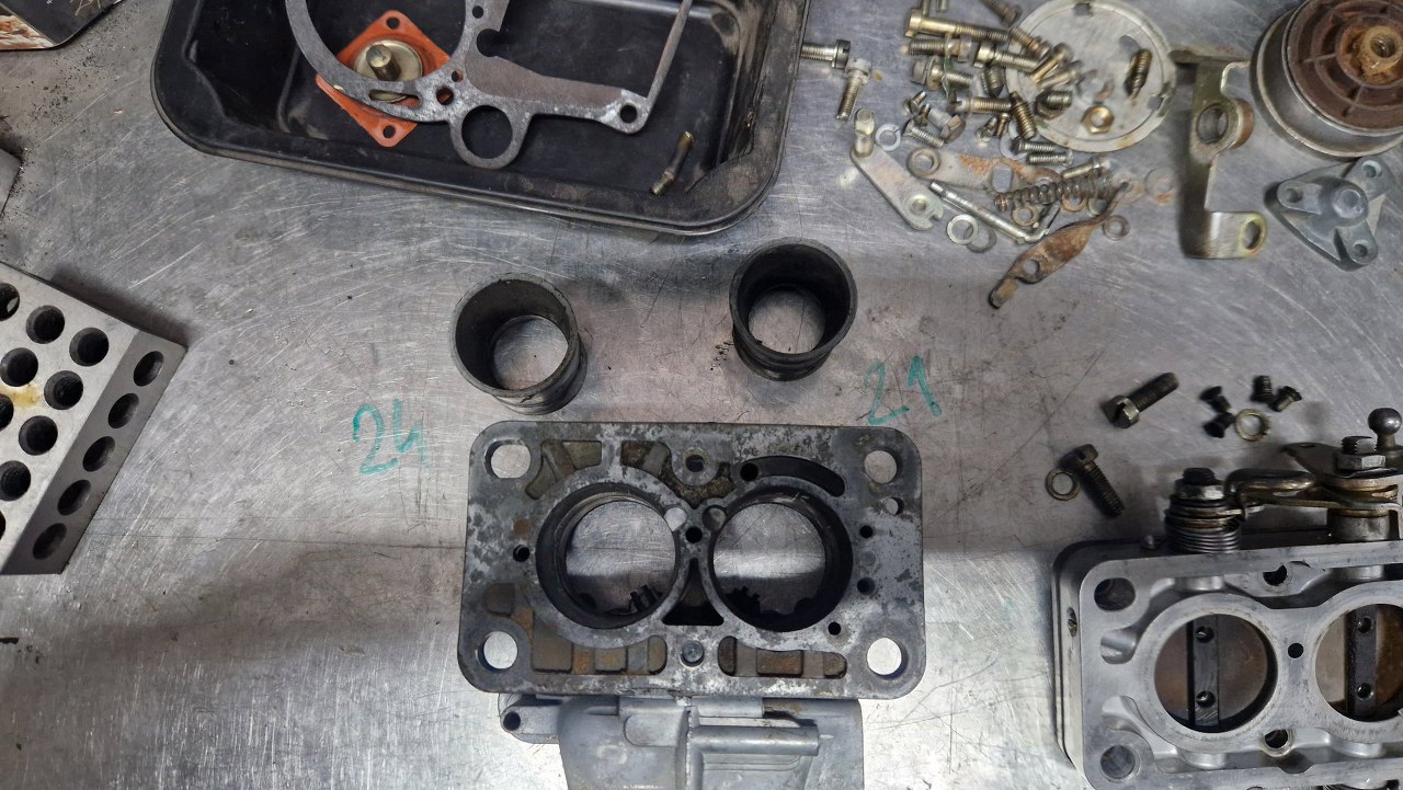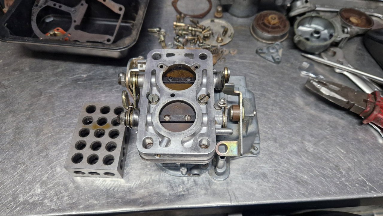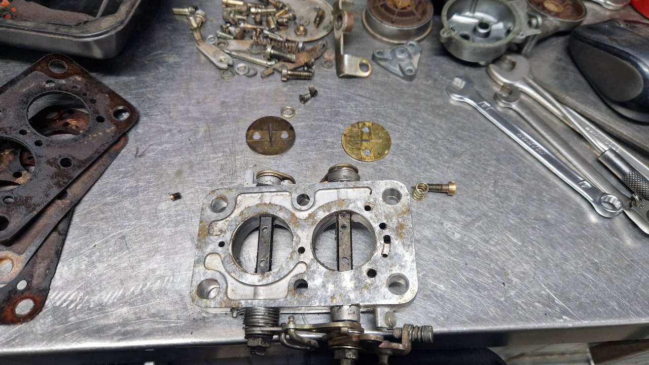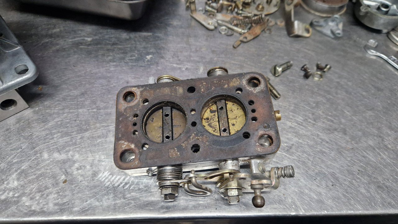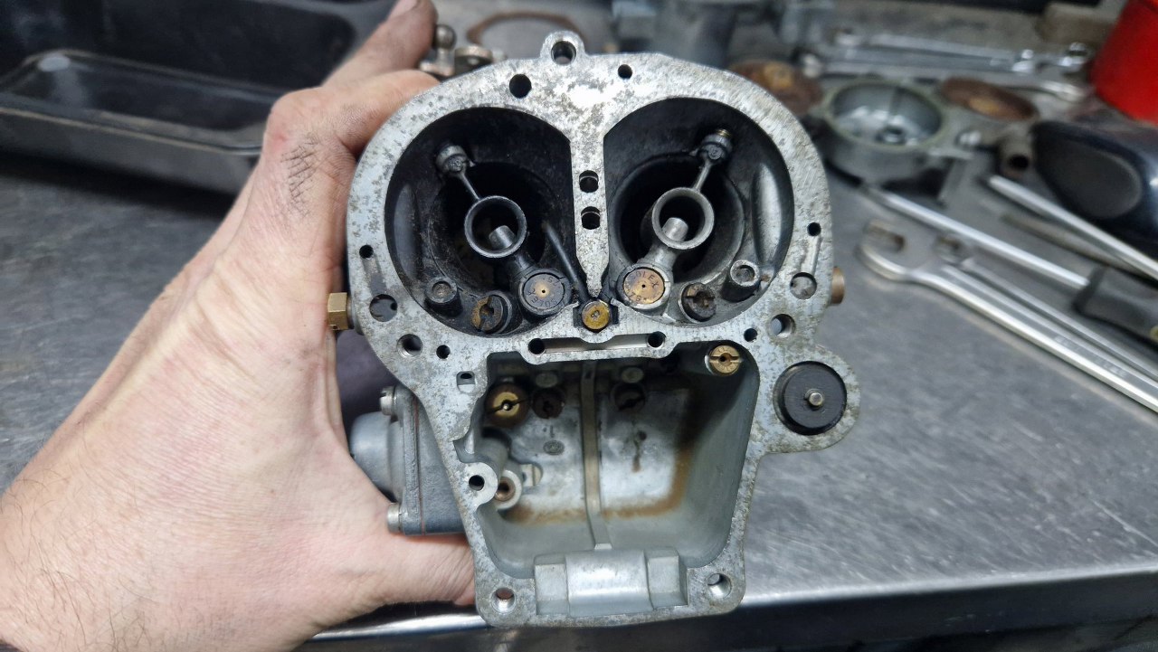 Odwracam gaźnik żeby się dostać do przepustnic.