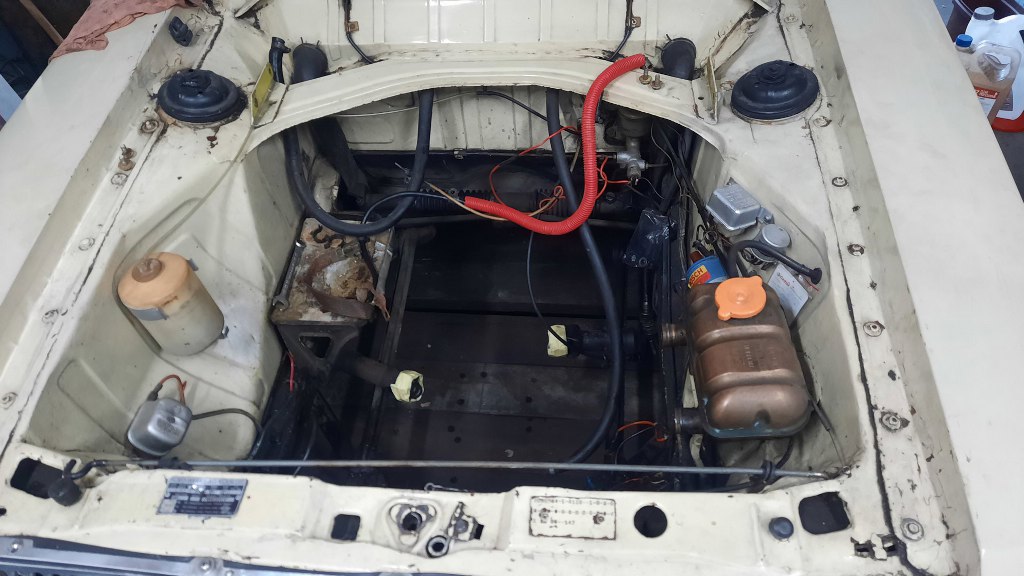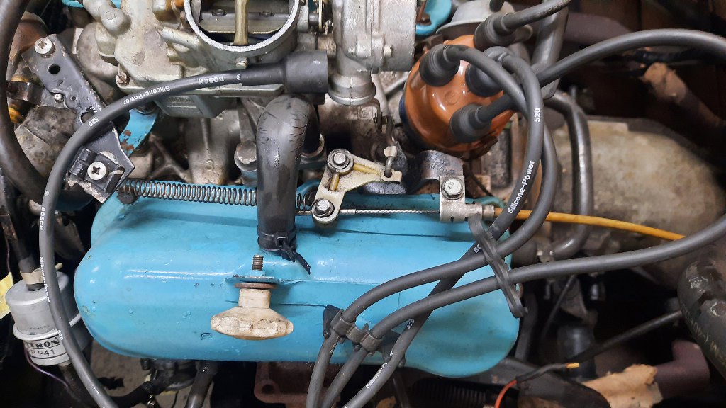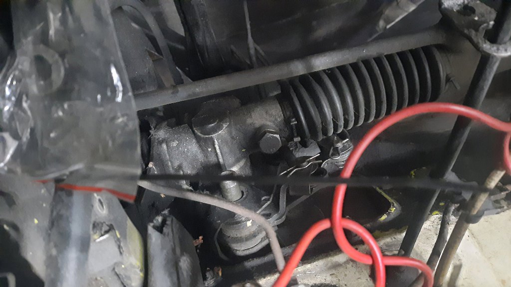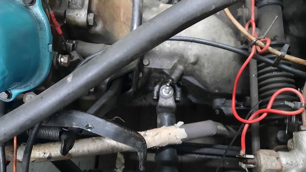 Powrót na górę samochodu - tu jest drugi koniec wodzików od zmiany biegów - wyjście kolumny kierowniczej przez gródź. Bo zmiana biegów jest tu oczywiście przy kierownicy.
