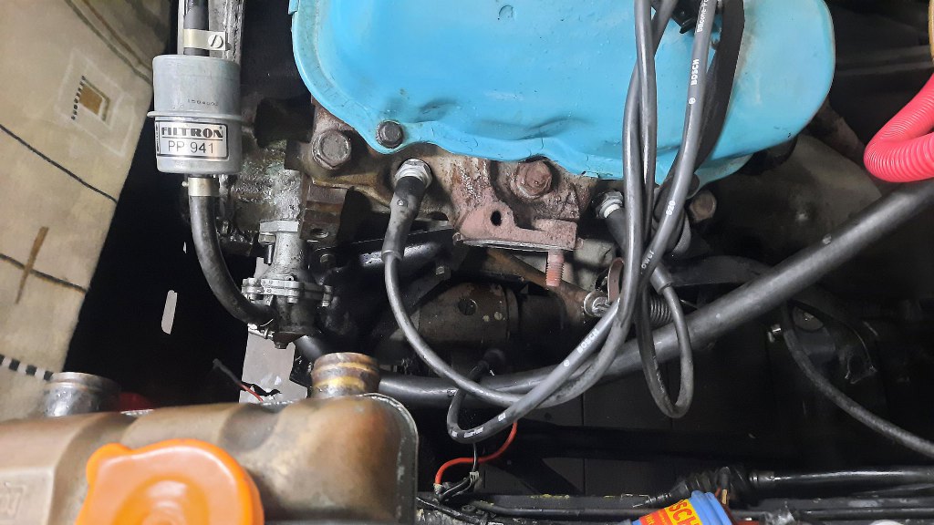 Potem odkręciłem wydech od głowic. Muszę odpiąć układ paliwowy. A rozrusznik mogę odkręcić później, jak już wyjmę silnik.
