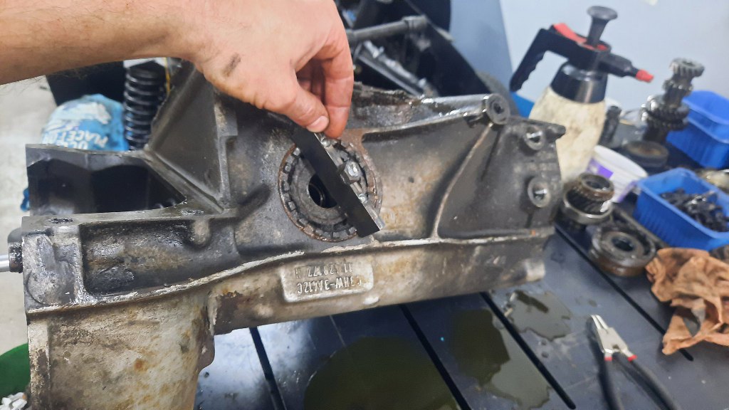 Po odkręceniu śrub mocujących widełki wybieraków można je powyciągać lub przesunąć, a następnie wyjąć całą resztę mechanizmu skrzyni biegów.