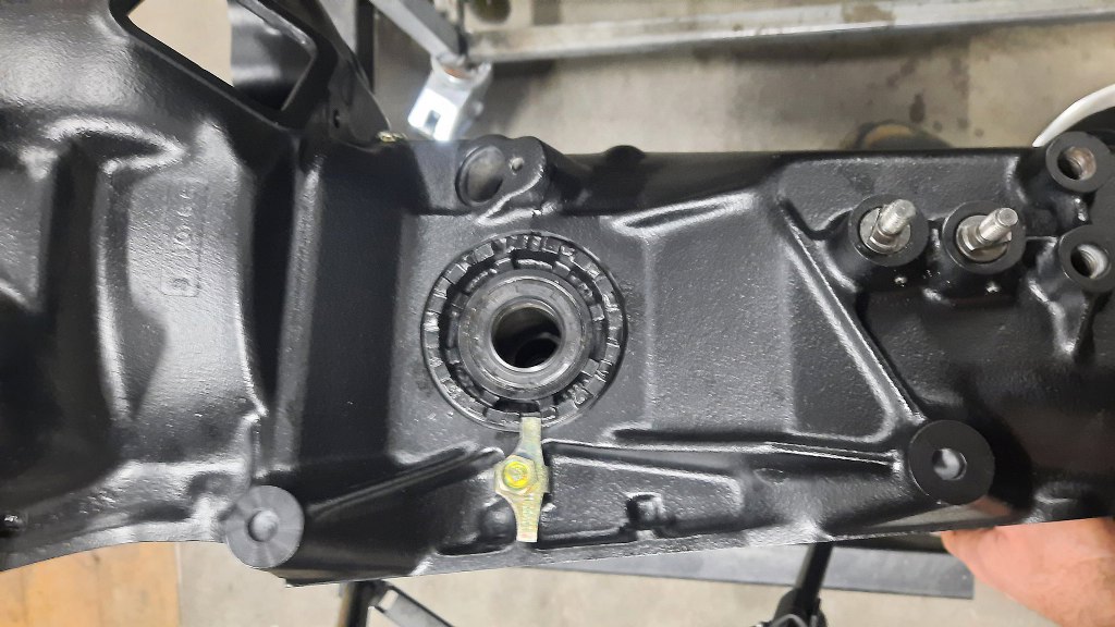 Następnie włożyłem wałek ataku (z nasmarowanymi olejem łożyskami) do przedniej części skrzyni.