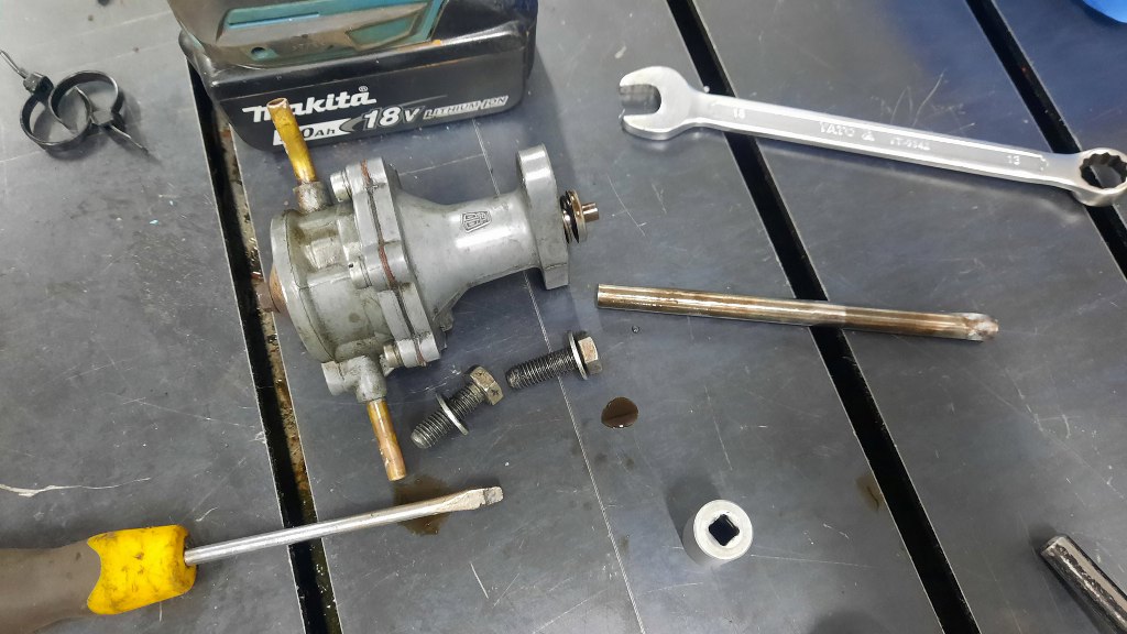 Potem odkręciłem pompę paliwa. Jest starszego typu, tylko od V4. Później były takie same, jak w V6. różnią się welkością i średnicą króćców.