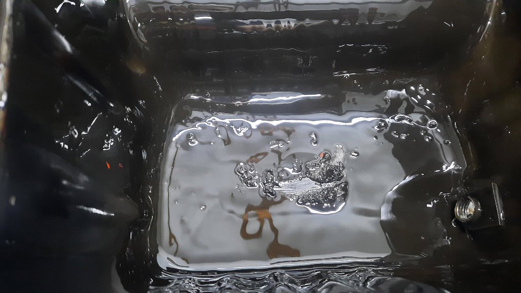 Następnie odkręciłem miskę oleju. I tu robi się jeszcze mniej ciekawie. Na dnie jest całkiem spora kupka brokatu. Czyli opiłków. Niedobrze. Ale już wiemy, że słabe ciśnienie oleju to nie był przypadek.