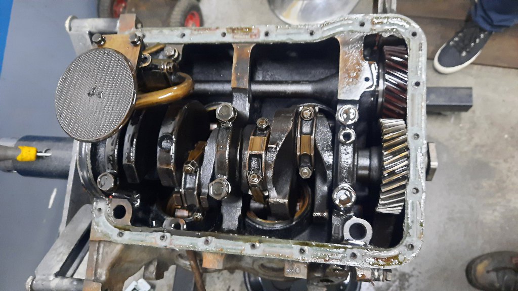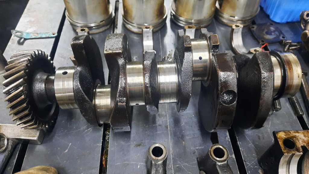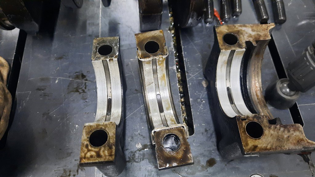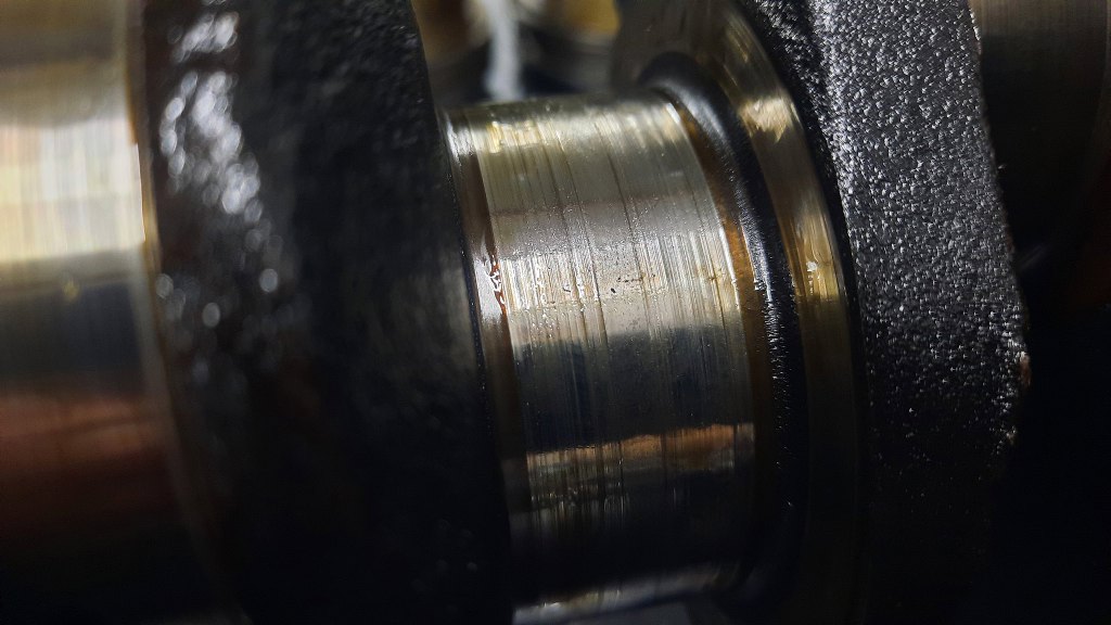 Wał niestety bardzo mocno uszkodzony, możiwe, że tymi opiłkami. Mam teorię, że został tu zrobiony remont, ale bez dokładnego umycia wnętrza silnika i bez wymiany pompy oleju. I po tym remoncie silnik nie zrobił już dużego przebiegu, bo nie dał rady.