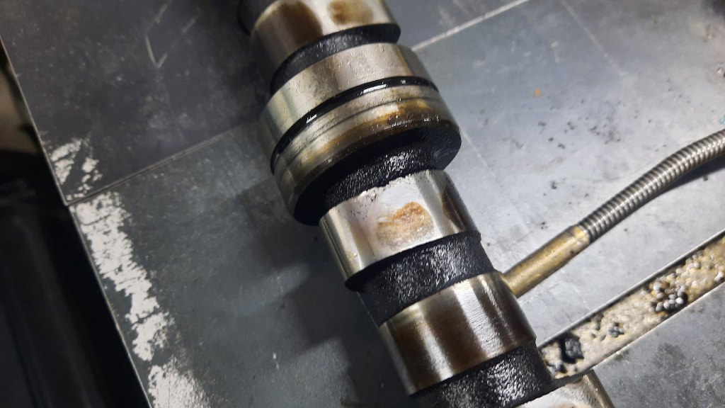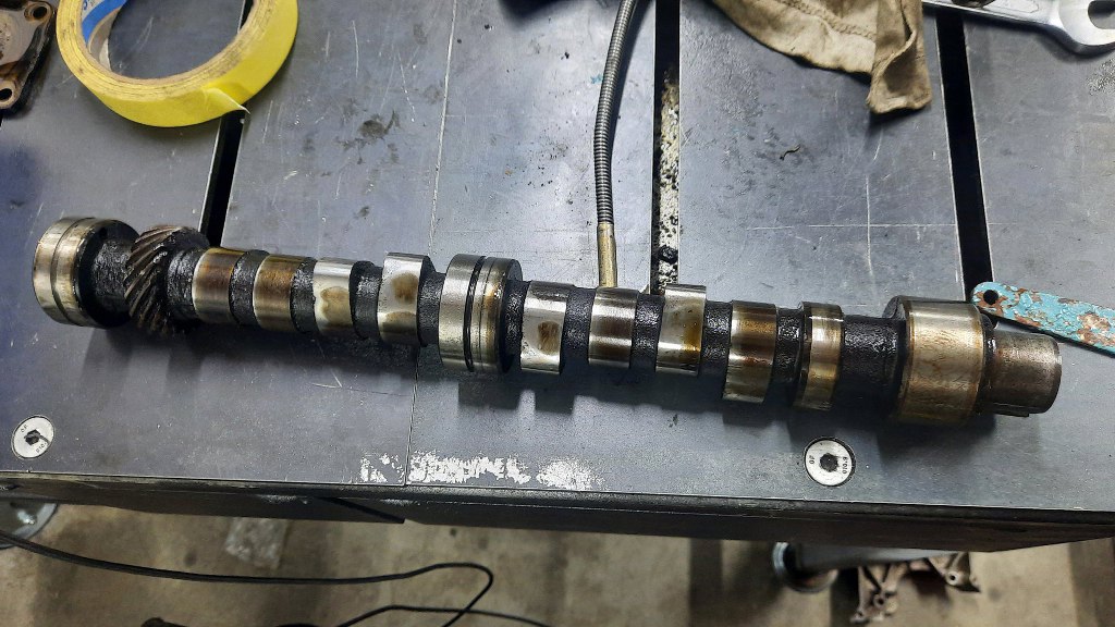 Do tego stopnia, że boczne krawędzie krzywek, po których jeżdżą popychacze zaworowe, są przetarte aż do warstwy nieutwardzonej - widać, że przetarte są aż do kropek - czyli drobnych porowatości odlewu.