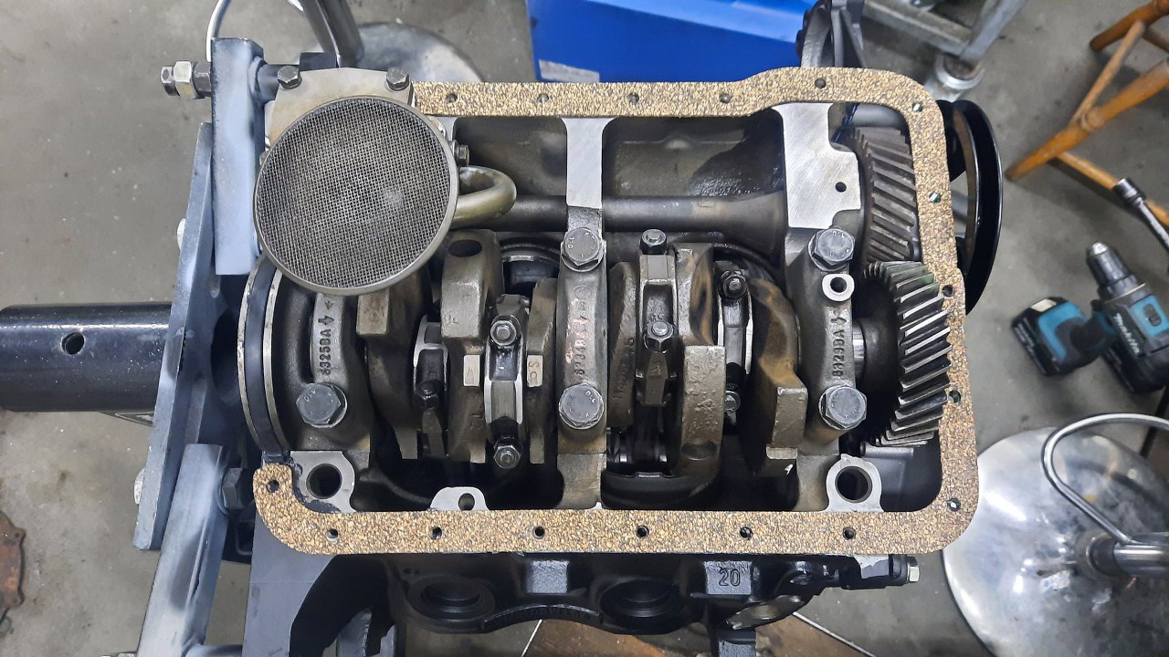Teraz mogę już zamknąć dół silnika miską olejową.