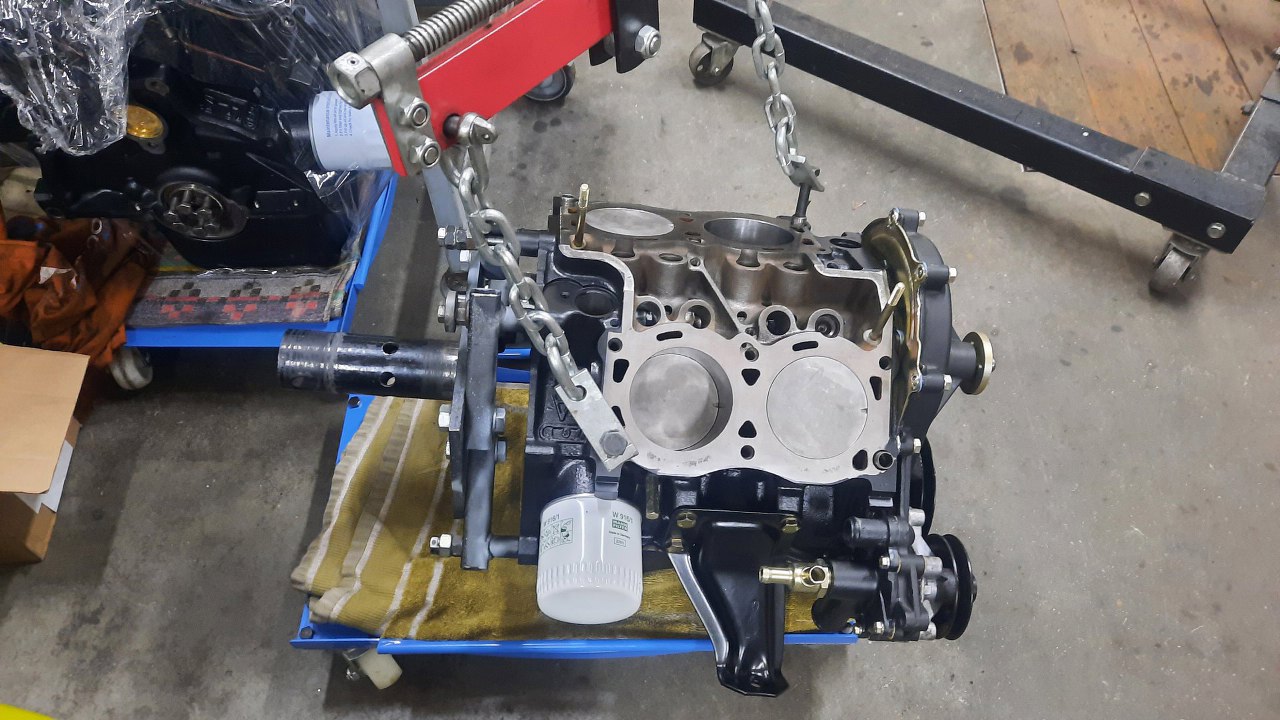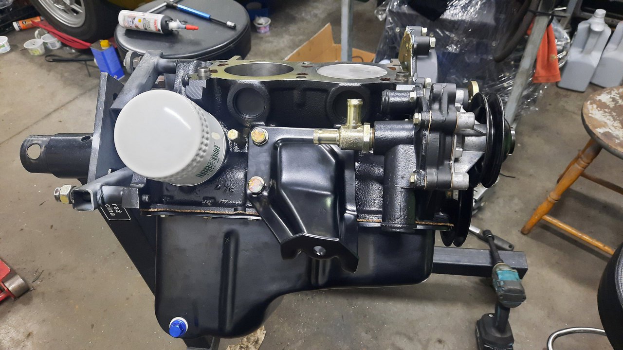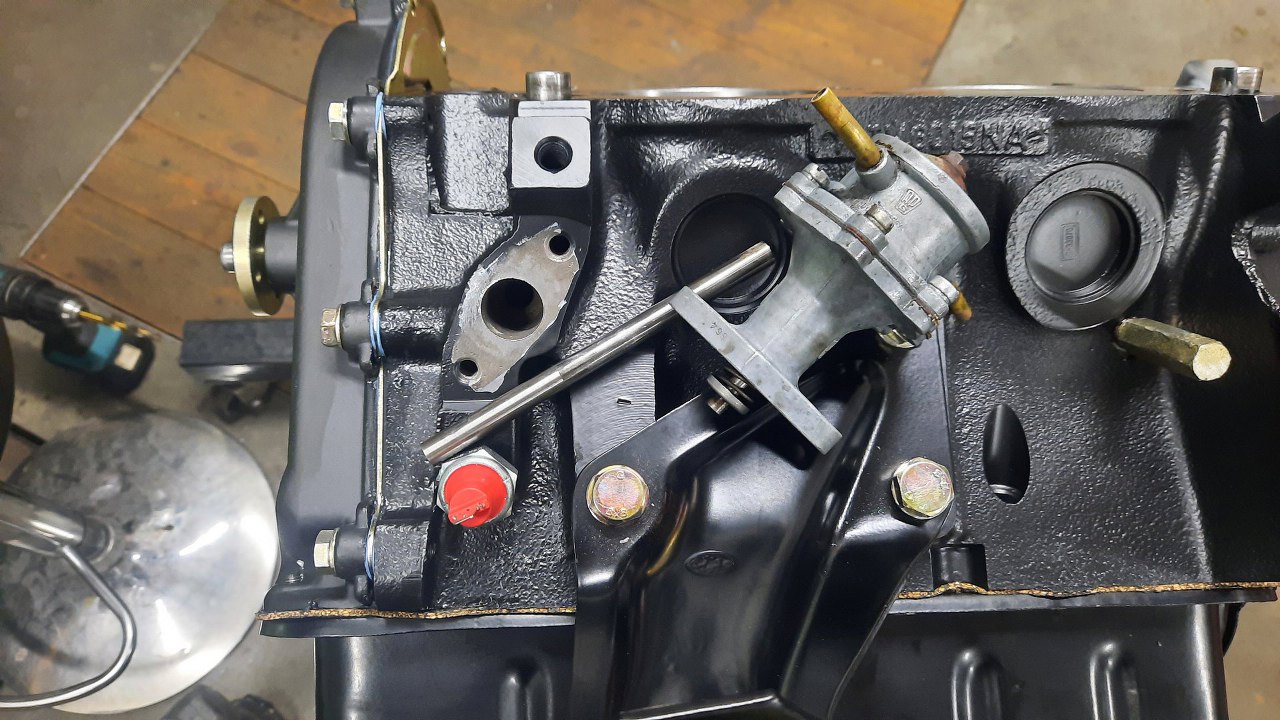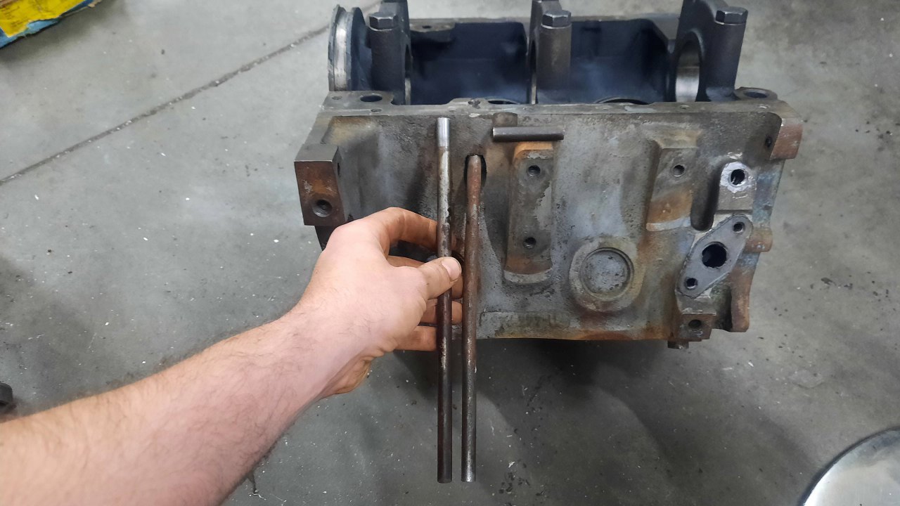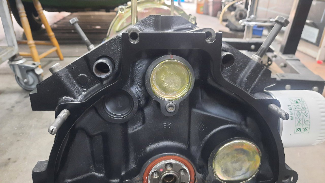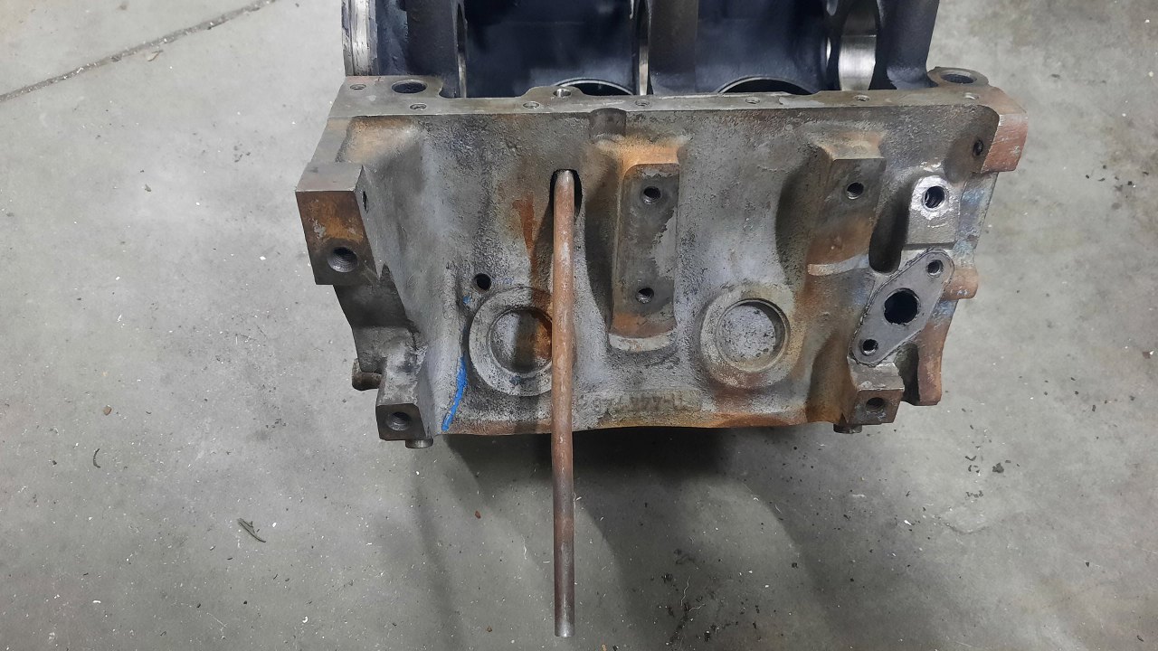 Oczywiście do "nowego" bloku stary czujnik nie pasował, musiałem wkręcić ten nowy. Przykręciłem też korek kanału wodnego z tyłu bloku. Zazwyczaj jest bardzo krótki, w tym silniku ma dobre kilka centymetrów długości i nikt nie wie dlaczego. A najciekawsze jest to, że wygląda na oryginalny. Założę też zaraz pompę paliwa.