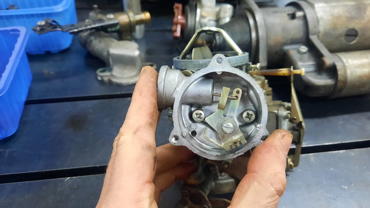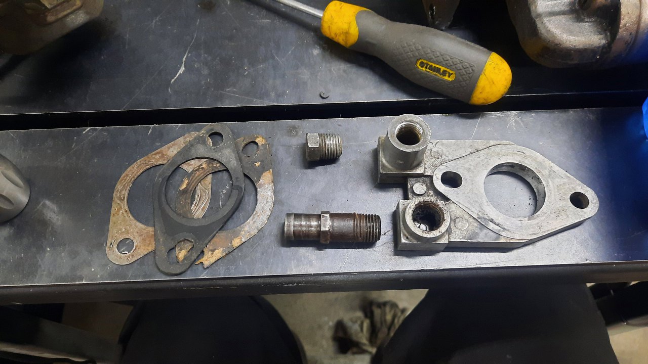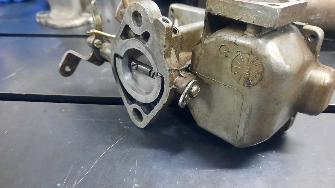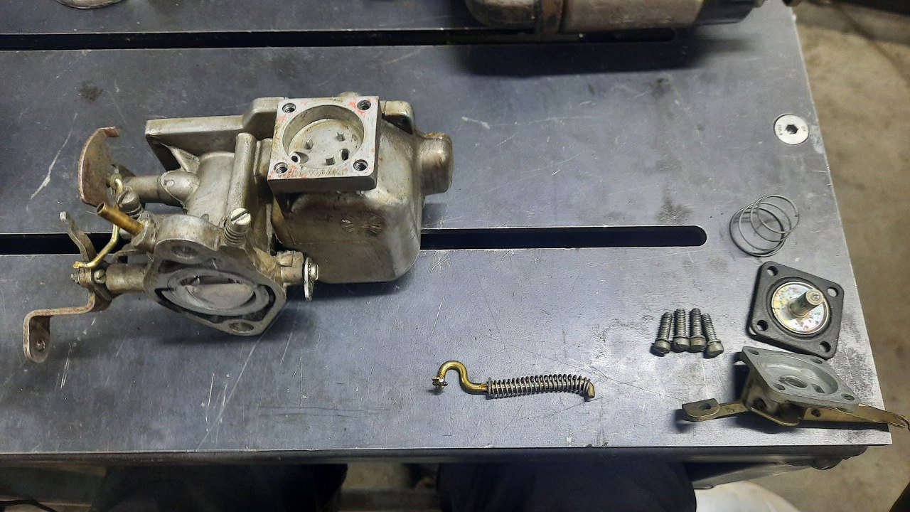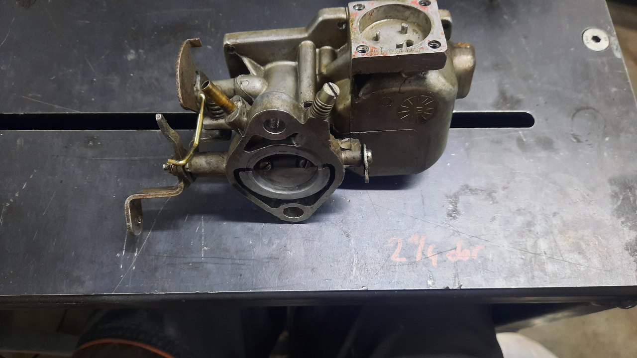 Zanim jednak się do niego dobrałem, wykręciłem korek i zaworek odmy z podstawki gaźnika. Stalowe części będą ocynkowane razem z częściami gaźnika.
