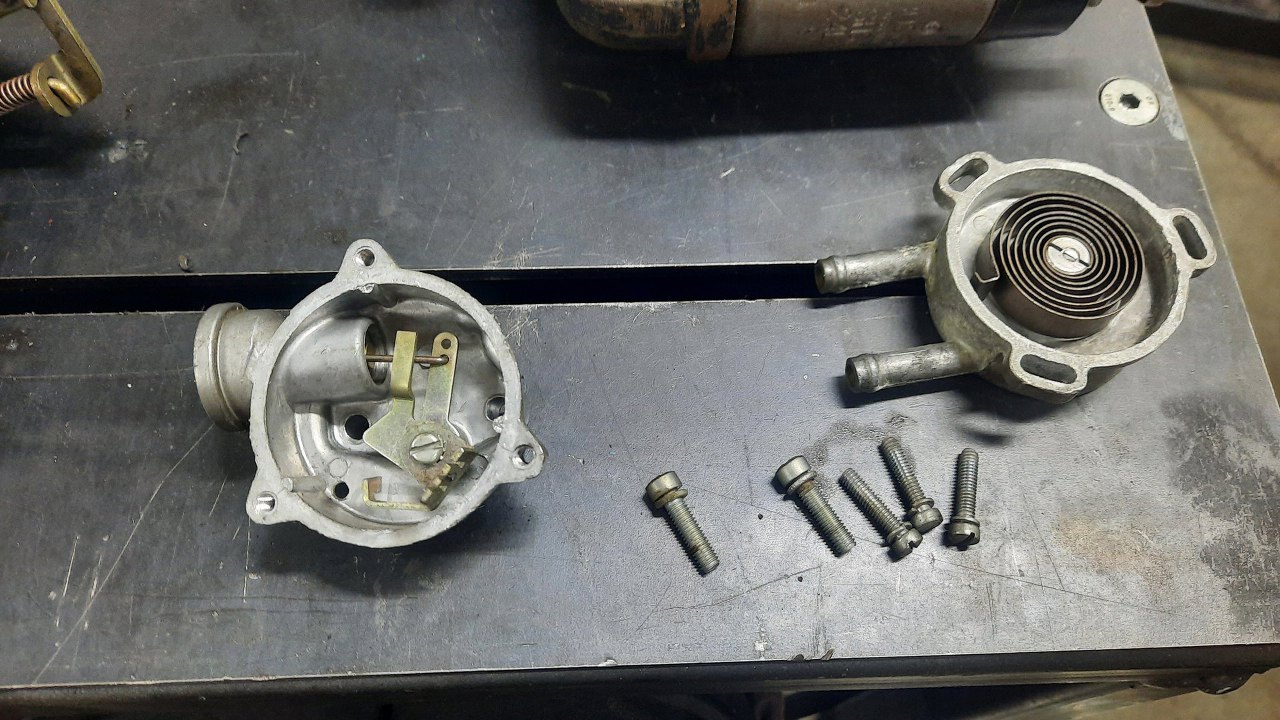 Teraz już mogę rozkręcić gaźnik. Najpierw grzałka ssania.