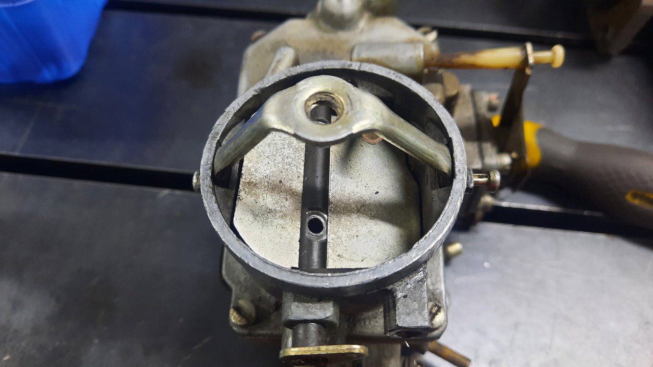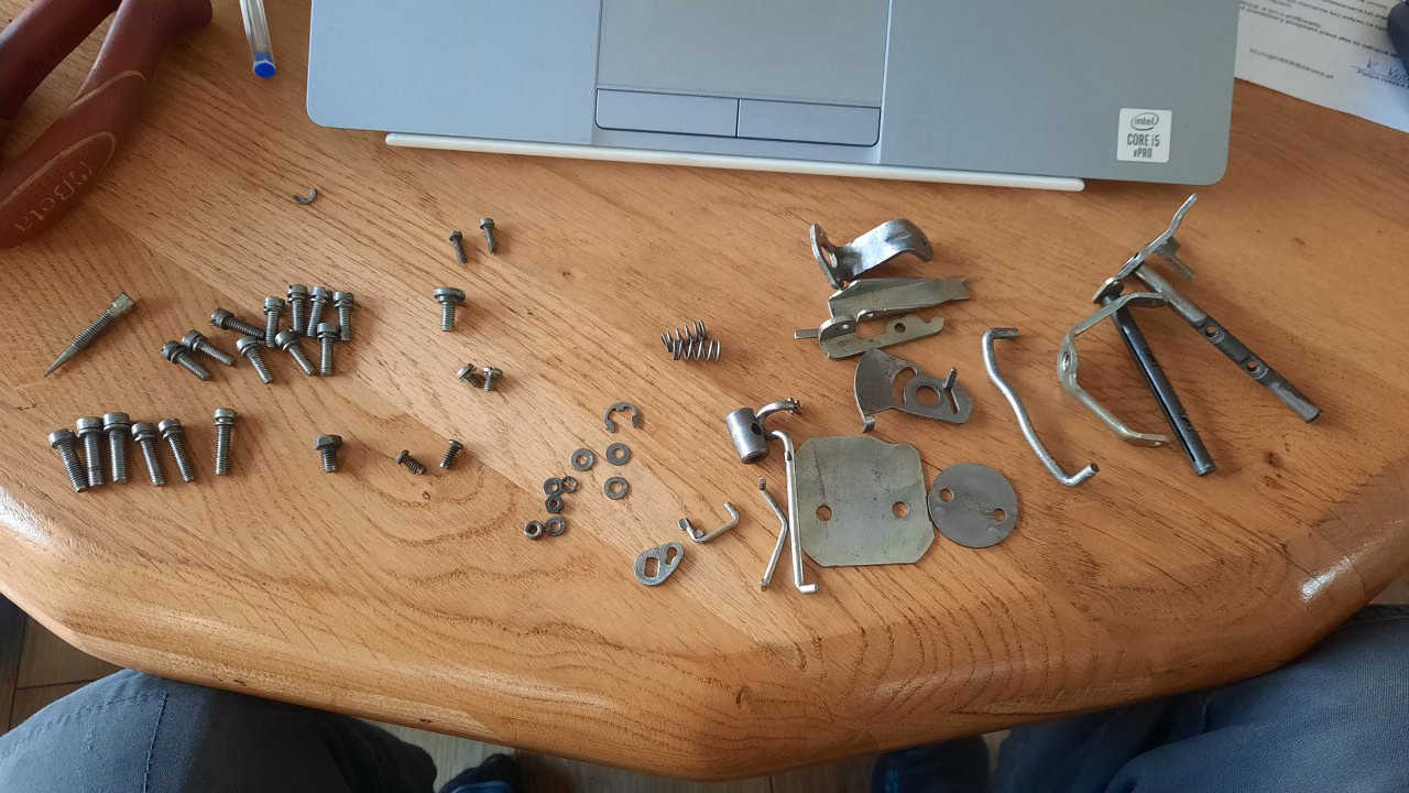Z pokrywy gaźnika wyjąłem klapkę i ośkę ssania.