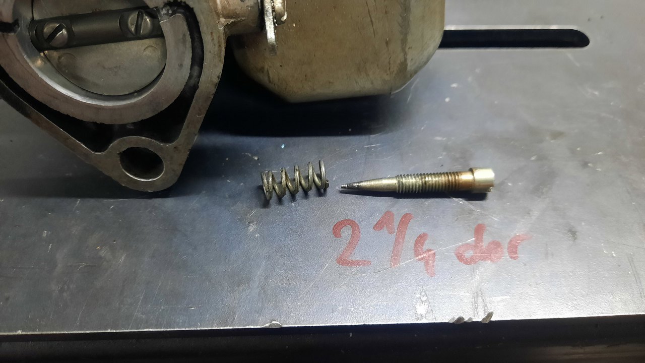 Wykręciłem dyszę wolnych obrotów. Zazwyczaj zapisuję sobie ile była wykręcona, żeby porównać z ustawieniem po regeneracji.