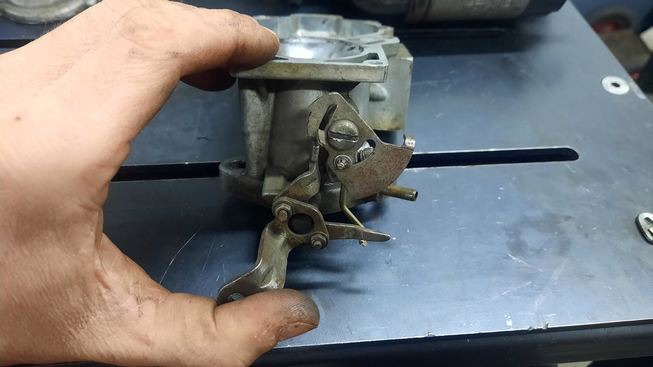 Z tej strony jest jeszcze dźwignia do otwierania przepustnicy i mechanizm łączący przepustnicę ze ssaniem.