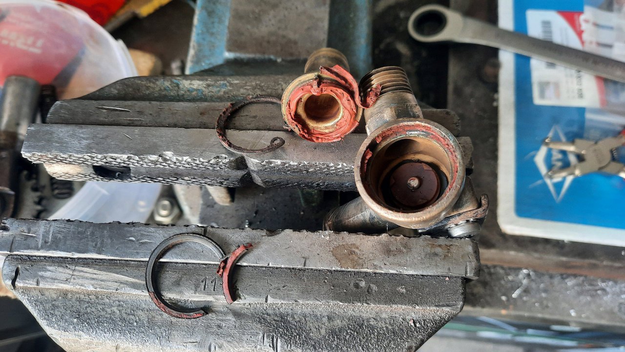 Zanim jednak je przykręcę, muszę założyć jeszcze rurkę chłodzenia. Do przykręcenia jej są potrzebne cybanty. Akurat były nawet przy niej oryginalne, fordowskie. Tyle, że nie pasowałyby do silnika po remoncie.