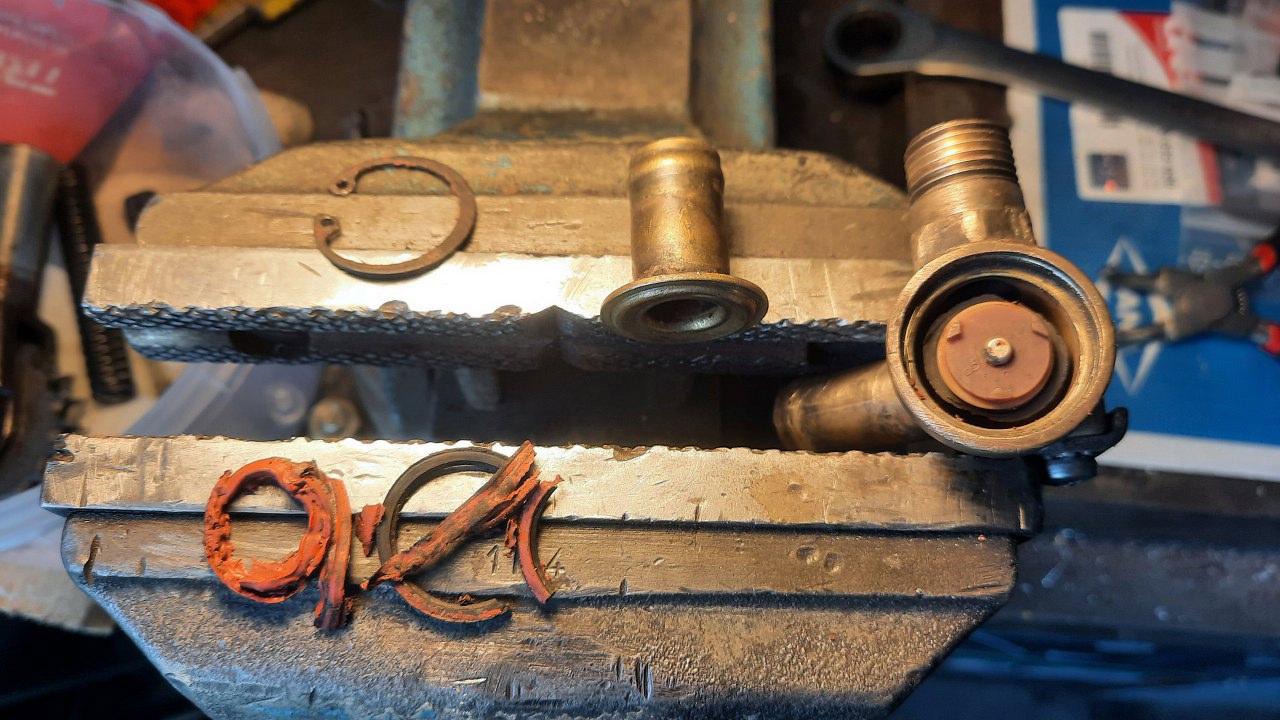 Bo jest. Jego uszczelka musiała cieknąć, i ktoś połatał to silikonem. Prawdopodobnie to też ciekło. Sama uszczelka rozpadła mi się w rękach, widać ją po lewej.