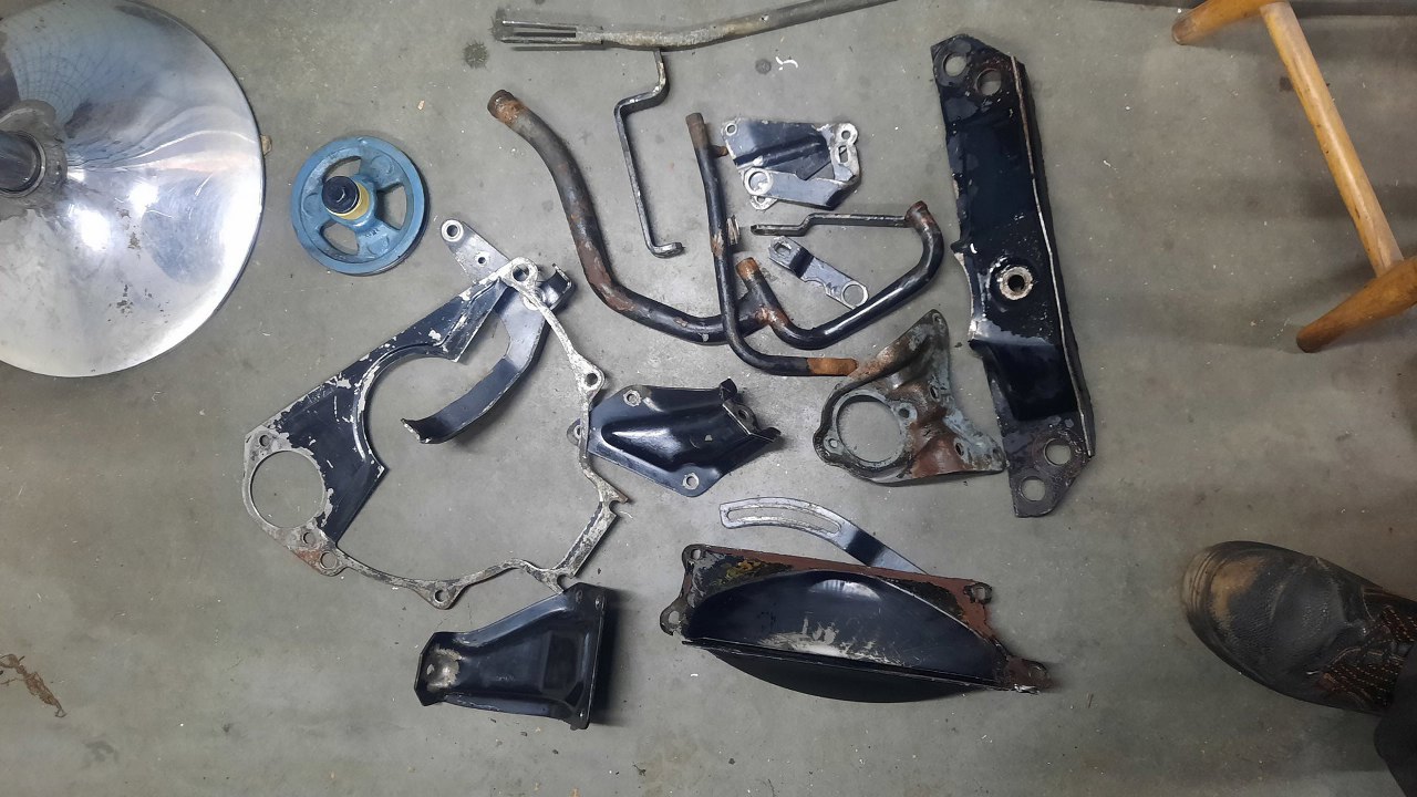 A tu, dla przypomnienia, zdjęcie jak wyglądały części przed odnowieniem. Łapy silnika już przykręcone, ale resztę dopiero zaraz będę zakładał.
