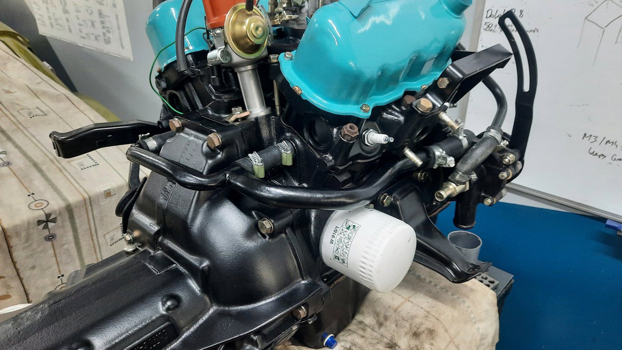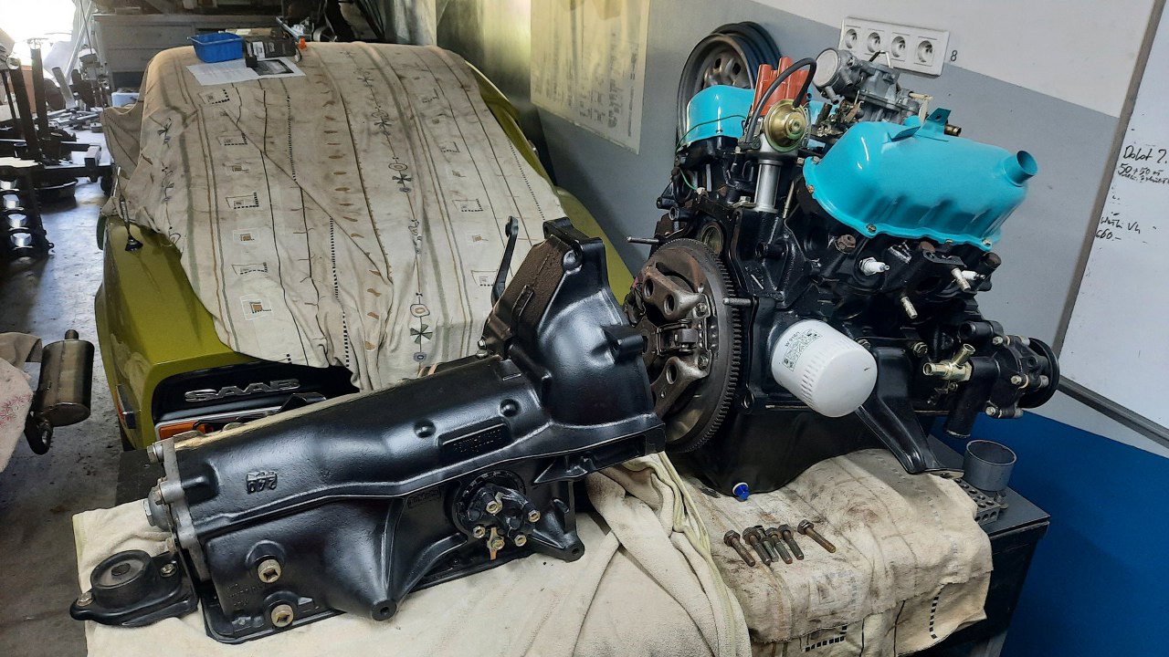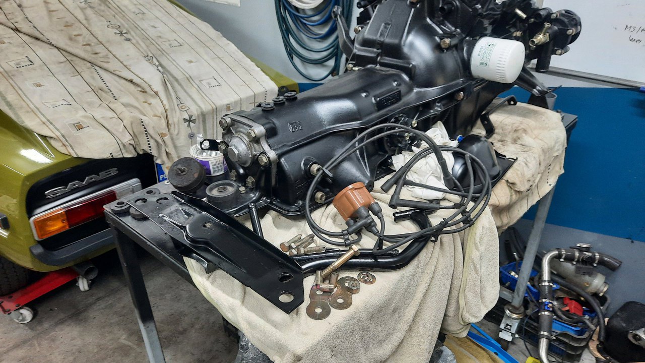 Wrzuciłem silnik na stół warsztatowy. Potem dołączyła do niego skrzynia biegów.