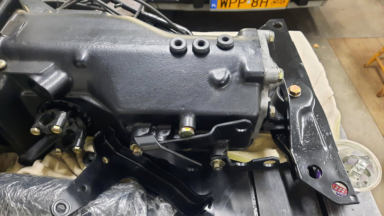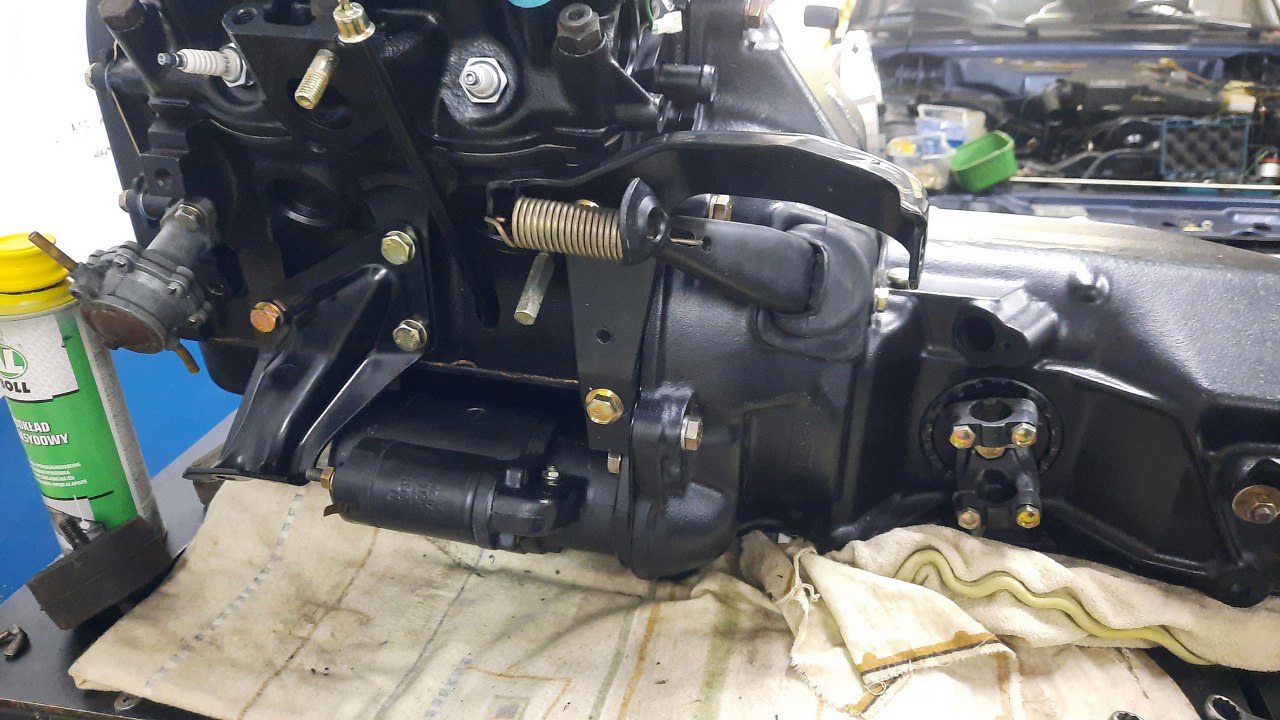 Po chwili walki z trafieniem wałkiem sprzęgłowym do tarczy sprzęgła i łożyska pilotującego w wale korbowym, skrzynia jest przykręcona na miejsce.