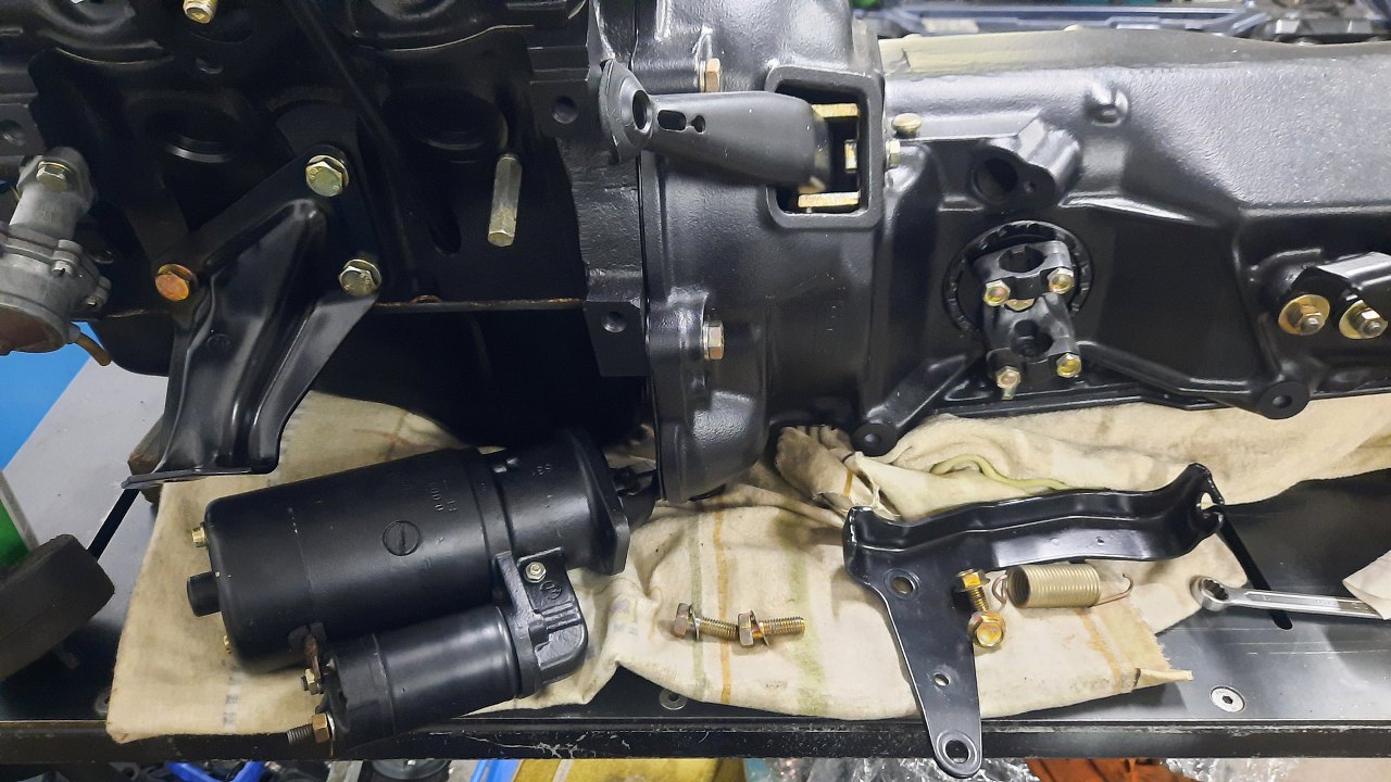Z tej strony przykręcę jeszcze rozrusznik i łapę linki sprzęgła.