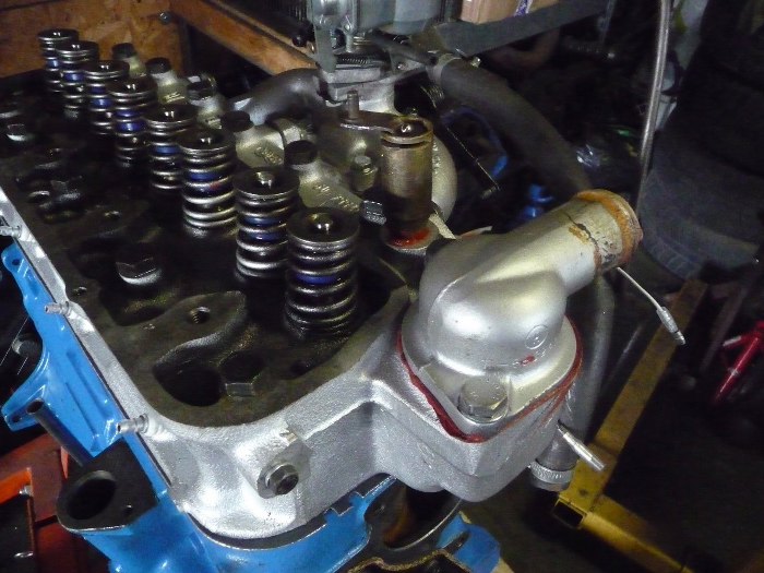 I pompa wody również na miejscu. Widać również, że powkładałem drążki popychaczy.