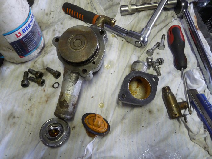 A tu - rewia czerwonego silikonu! Obudowa termostatu, zawór, pompa wody. Tu potrzeba zdecydowanej, silnej, męskiej ręki. :)