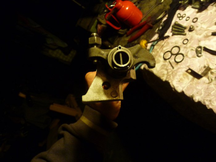 Tu widać olej lecący z tej rurki podczas kręcenia pompą oleju. Na ten widok bardzo długo czekałem. Ta rurka oczywiście będzie włożona we właściwe miejsce - po prawej od niej jest jej gniazdo, obok śruby w podporze ośki dźwigienek zaworowych.