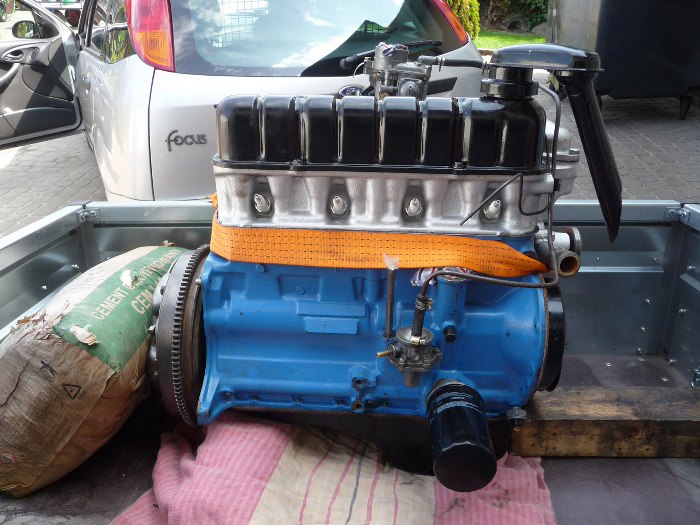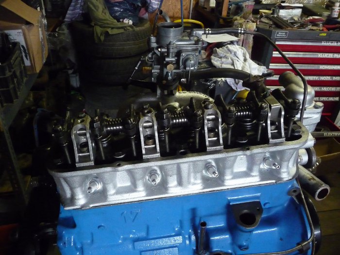 Kolejnym silnikiem, który trafił do mojego garażu, jest rzędowa czwórka o pojemności 1,7l z Forda Taunusa 17M, ale tym razem z wersji wcześniejszej niż te V4, które ostatnio robiłem, czyli z P3. Właściciel chciał odświeżyć silnik, a ponieważ nie miał warunków u siebie, wszystko trafiło do mnie - najpierw na dokładne mycie. Potem silnik został poskładany przez właściciela, ale nie miał smarowania na głowicy. Po mojej diagnozie zostały wymienione panewki wałka rozrządu - smarowanie głowicy jest zasilane z jednej z nich. Myślałem, że jest już wyrobiona i olej ucieka bokiem. Nowe panewki były nieosiągalne, więc zostały dorobione w pewnym warsztacie w tym się specjalizującym. Zostały dorobione z aluminium. Po zewnętrznej stronie środkowej panewki, właśnie tej zasilającej układ zaworów, biegnie kanalik olejowy. On też został wytoczony w dorabianych panewkach, ale był bardzo mylący. Przepuszczał powietrze i naftę, gdy testowałem czy jest drożny, natomiast miał za mały przekrój, żeby olej przez niego się przecisnął. Dopiero po dłuższym drapaniu się po głowie do tego doszedłem. W końcu jednak udało się znaleźć panewki dedykowane do tego silnika. Nadal jednak nie było smarowania układu zaworowego... ale o tym później :)